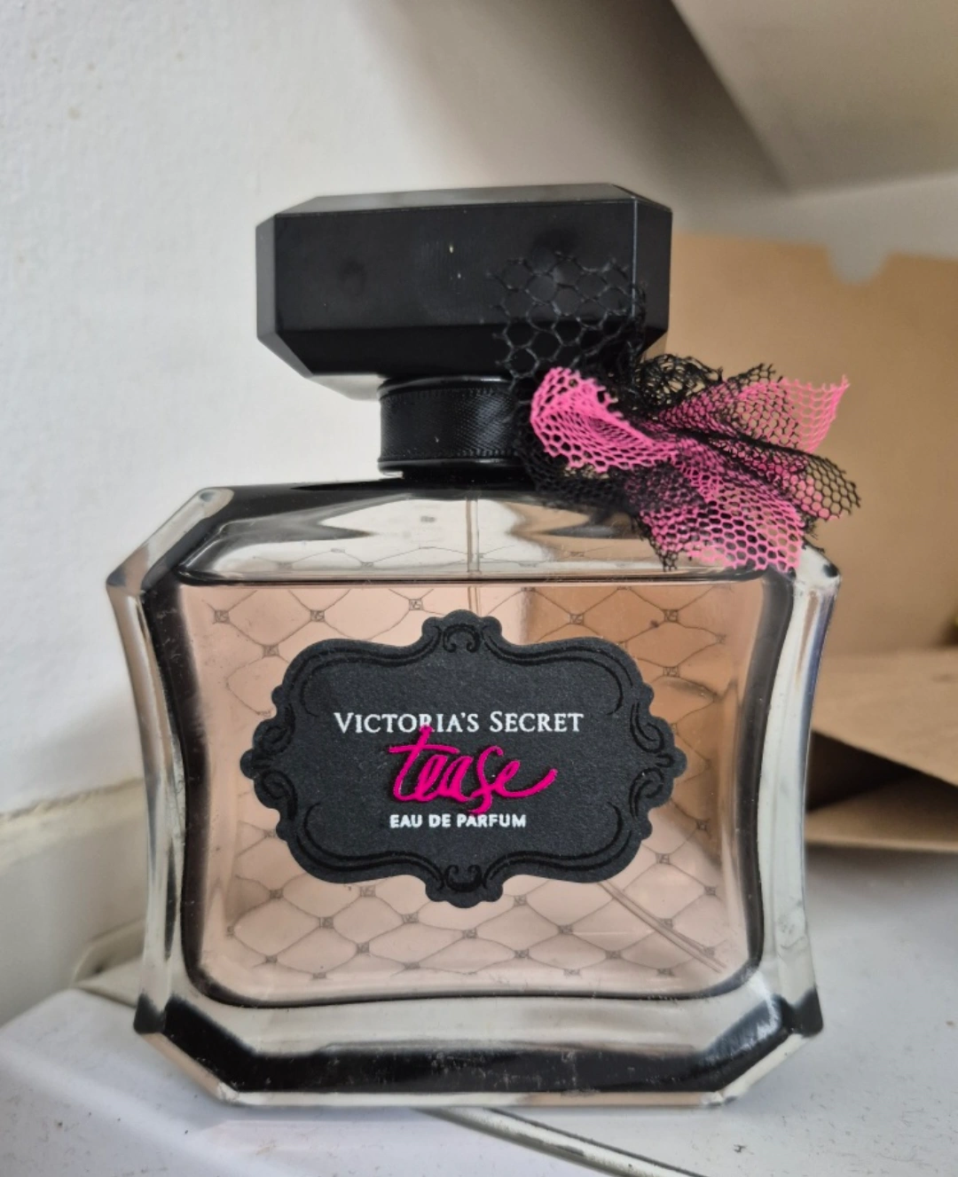 Victoria's Secret Tease Eau de Parfum. Beautiful bottle, black and pink accents.
