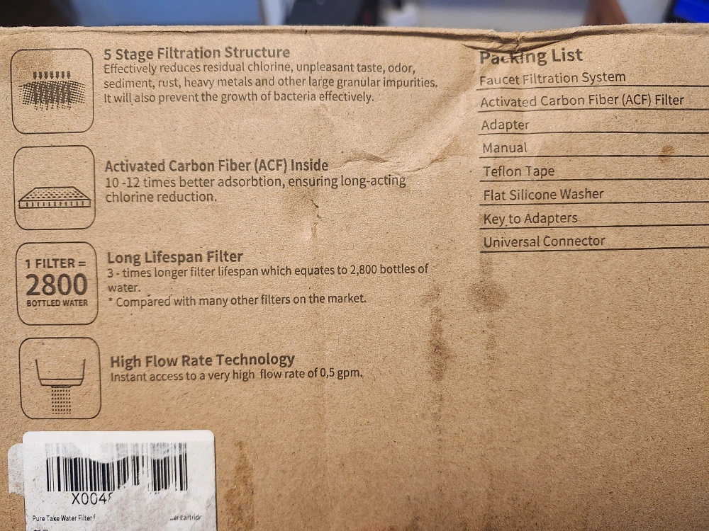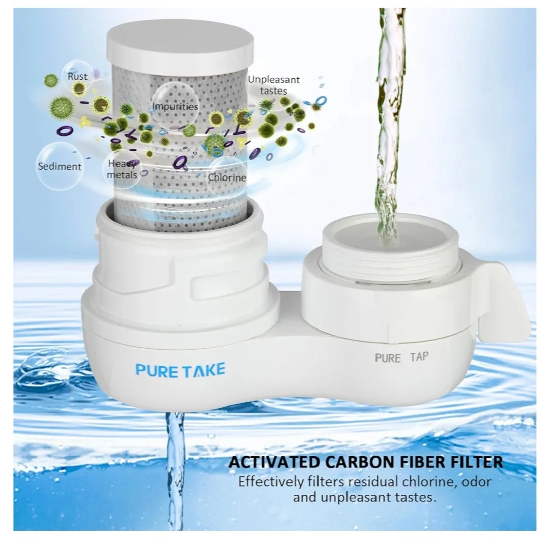 Activated carbon fiber filter system. Filters chlorine, odour, and unpleasant tastes. Includes two replacement filters. Easy installation. Improves tap water quality.