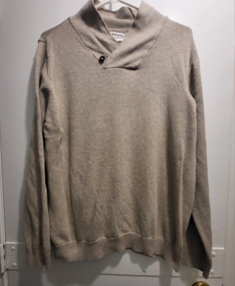 Topman Men's Beige Shawl Collar Sweater Size L