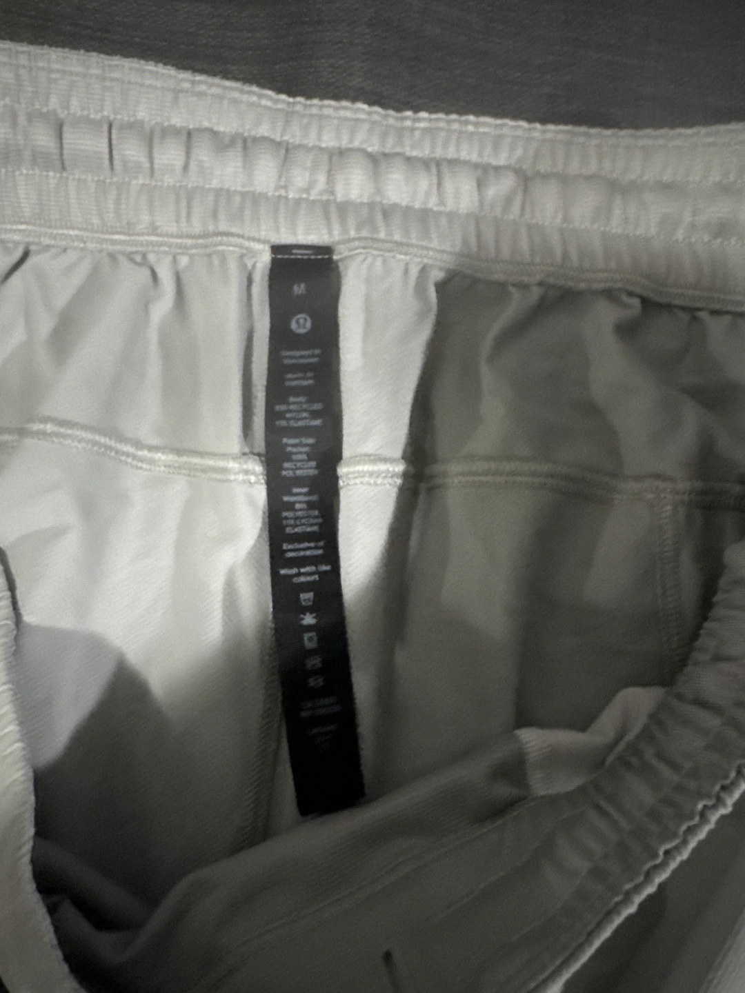 Light grey Lululemon Metal Vent Tech joggers. Size medium. Elastic waistband with drawstring. Two side pockets. Cuffed ankles. Great for workouts or casual wear.