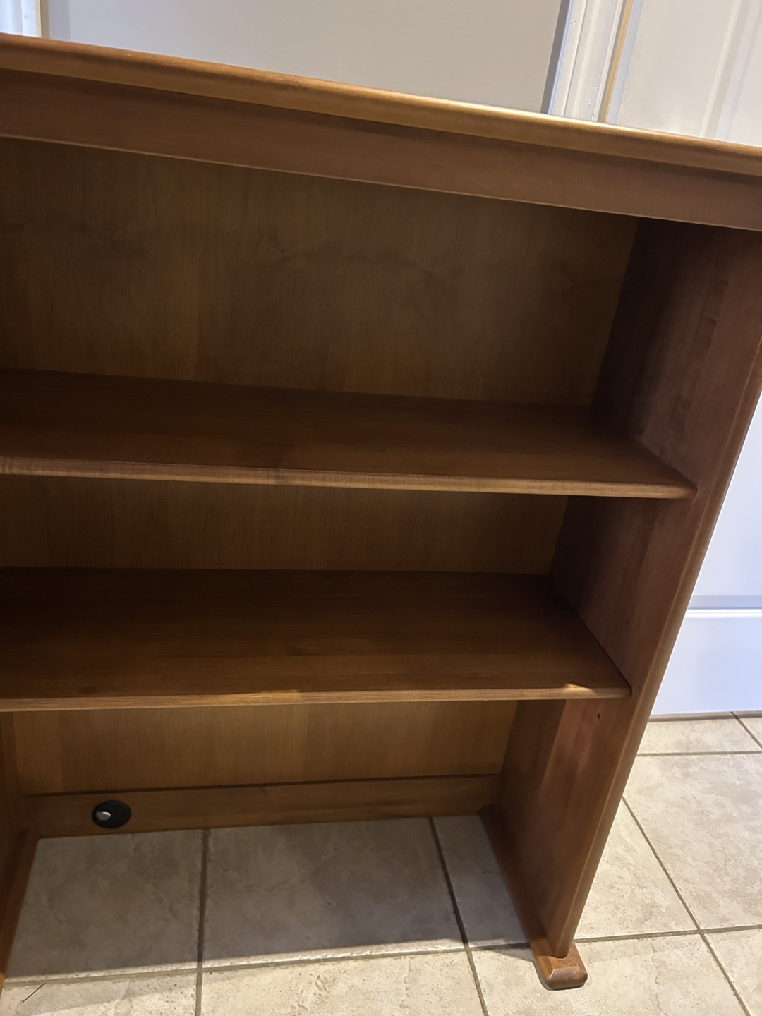 Solid wood dresser bookcase. Three shelves. Simple design. Good for organizing books or other items.
