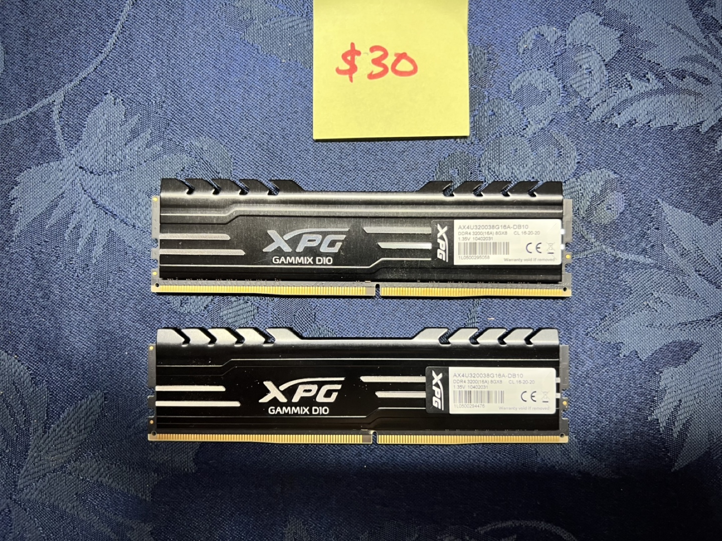 Two sticks of XPG Gammix D10 RAM. DDR4 3200MHz, 16GB total (2x8GB). CL16-20-20. $30.