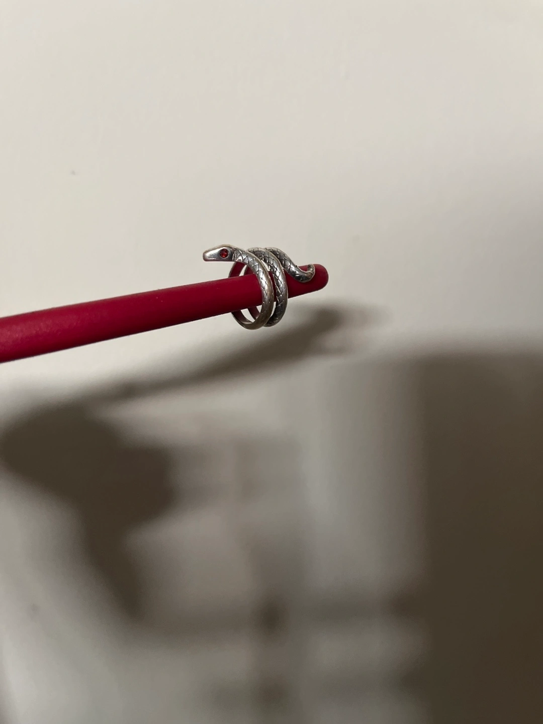 Silver 925 Snake Ring with red gem eyes