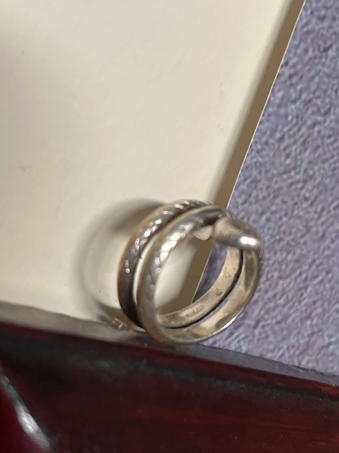 Unique silver ring. Features a coiled snake design. Adjustable sizing. Pre-owned.