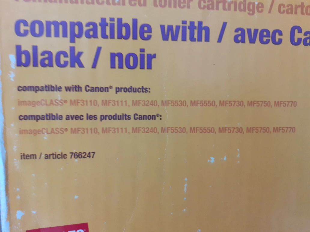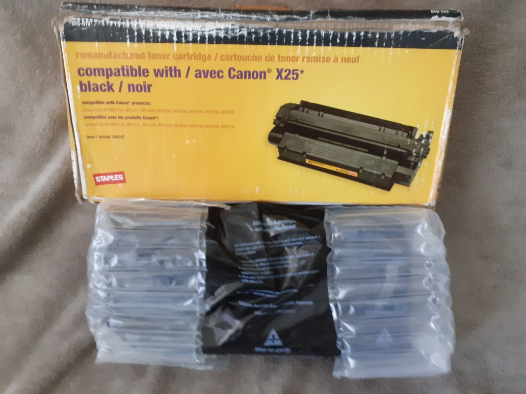 521Canon X25 remanufactured black toner cartridge. New unopened Compatible with Canon imageCLASS MF3110, MF3111, MF3240, MF5530, MF5550, MF5730, MF5750, MF5770. Staples packaging.