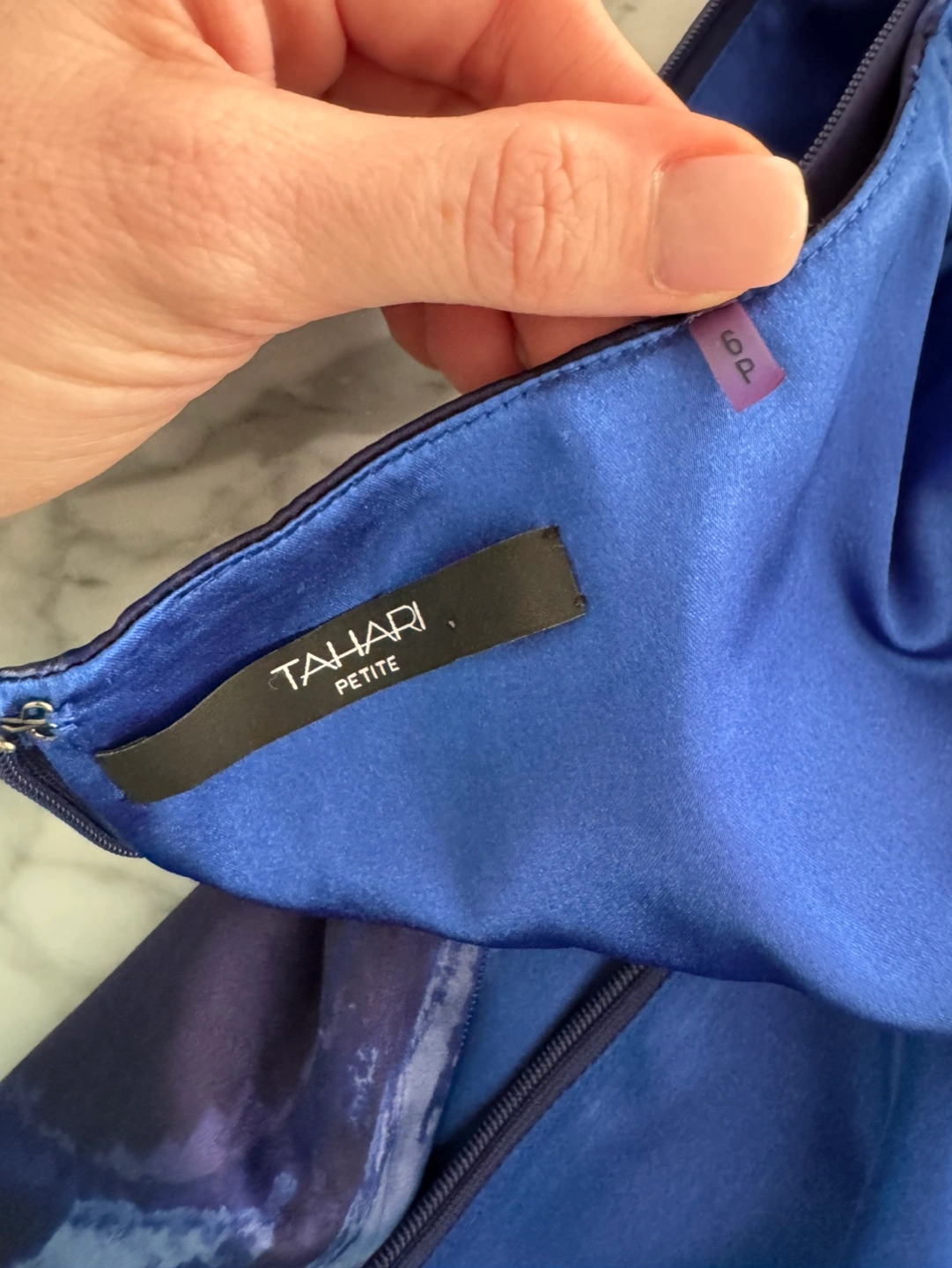 Tahari Blue Abstract V Neck Sleeveless Sheath Dress | Size 6P