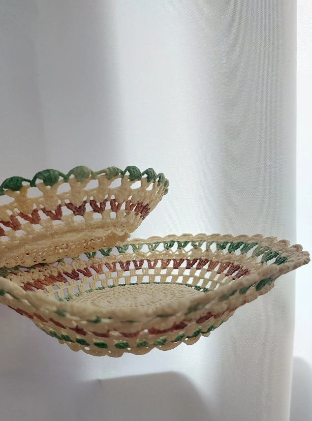 Set of Two Vintage Crochet Baskets