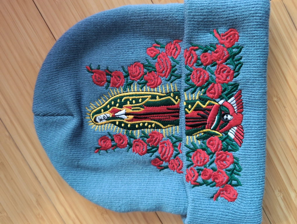 Supreme beanie. Teal color. Features embroidered Guadalupe image and roses. Supreme logo on cuff. Soft knit. Worn only a few times! excellent condition π