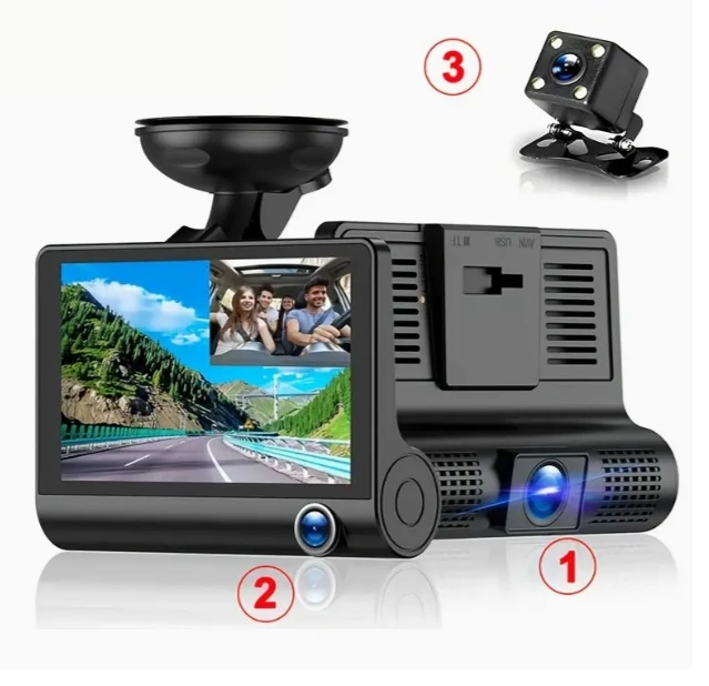 Triple-Lens Dash Cam - 1080P HD Recording, 170° Wide Angle, Night Vision, 24h Parking Monitor, Loop Recording, G-Sensor, Small Discreet Design for Cars