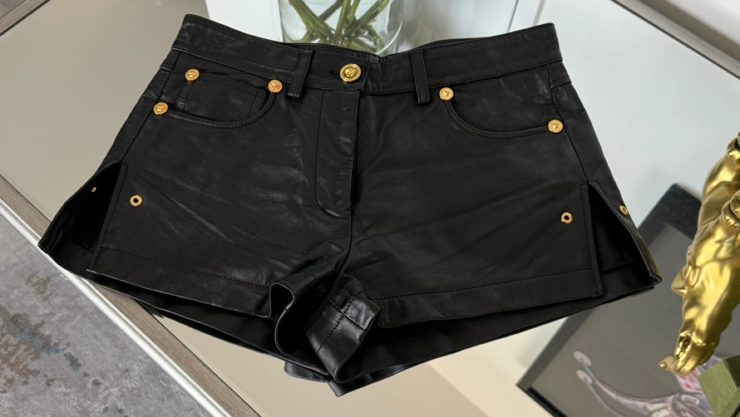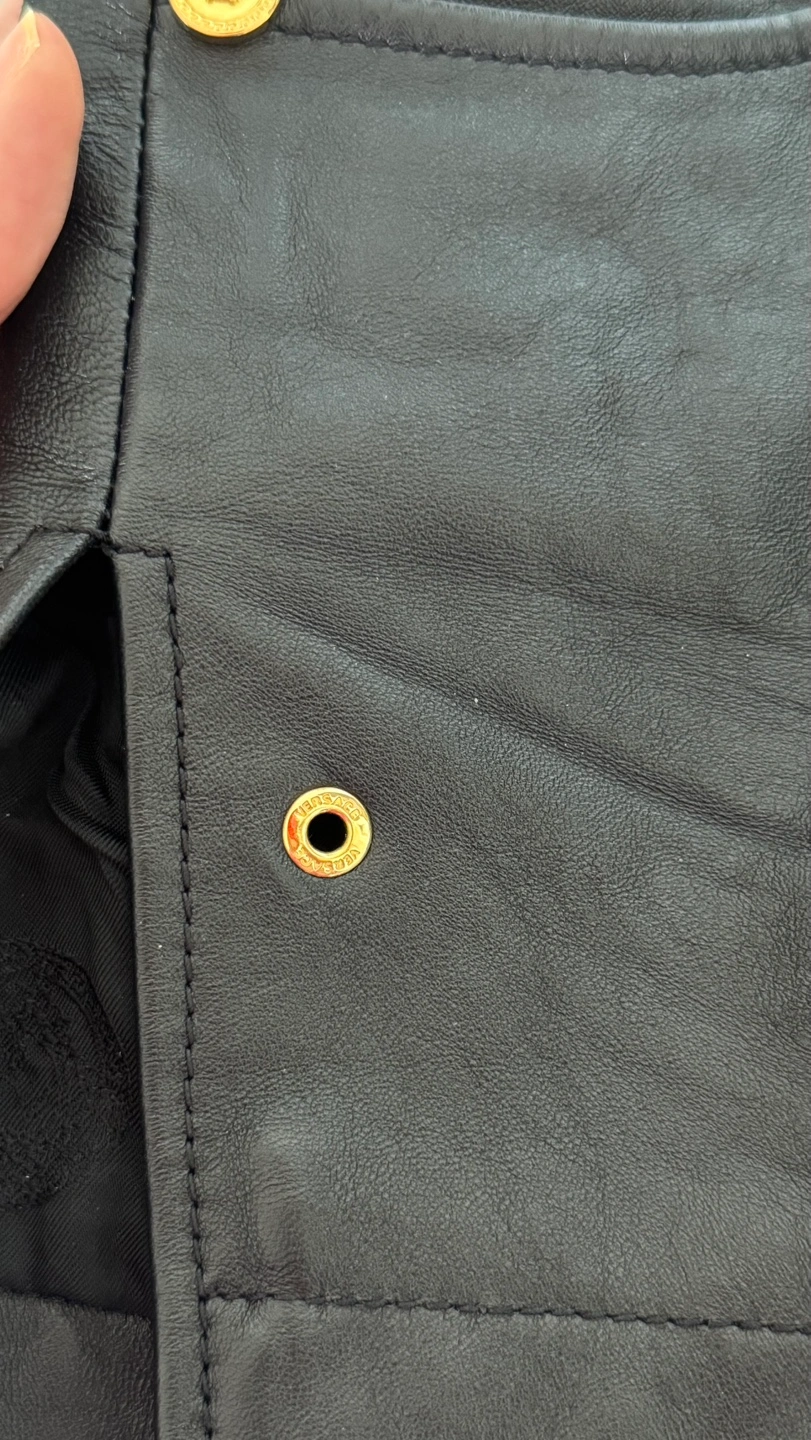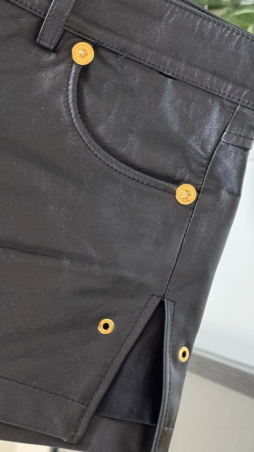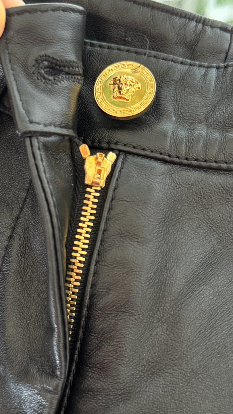 116VERSACE Leather Boxer Shorts Black Women. Authentic Size: S (36cm) Good condition 7/10 (Inside tag cut off, small tear in the zipper)