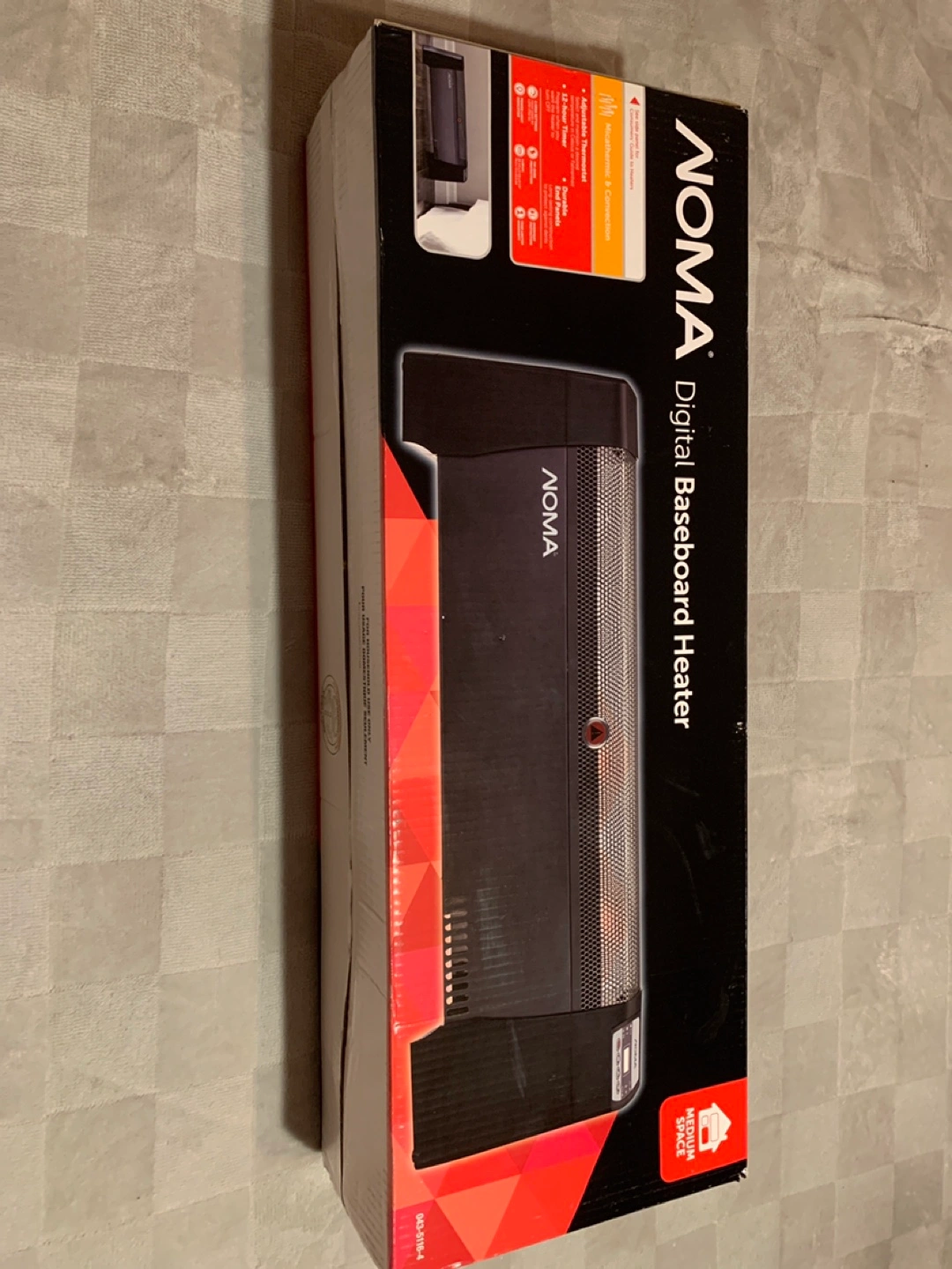 New in box. Digital baseboard heater. Silent operation. Includes numerical heating element and instruction guide. Perfect for medium-sized rooms. 120 V C.A., 60 Hz, 1500 W.