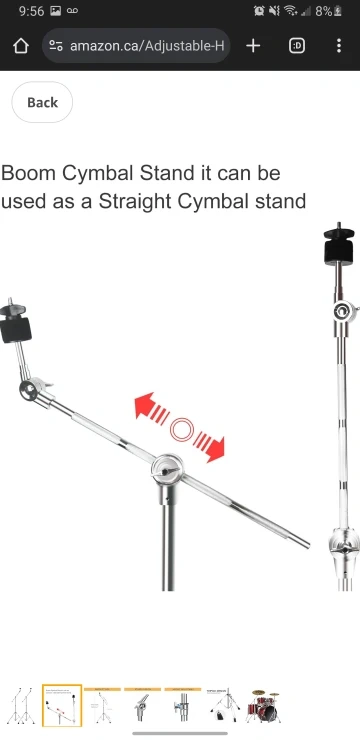 Brand New 2 Pack Boom Cymbal Stand, Adjustable Cymbal Stand for Drum Hardware Percussion Mount Holder Gear Set Drum Hardware Set for Mounting Crash, Ride, Splash Cymbals, Double Braced Legs with Rubber Feet