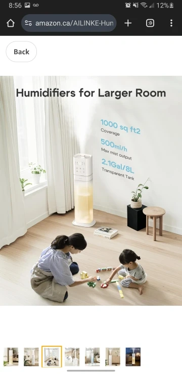 Brand New AILINKE Humidifier Large Room, 2.1Gal/8L Humidifiers for Bedroom with Extended Tube, Large Humidifiers 1000 sq.ft. Whole House Cool Mist Humidifier with Night Light, School/Office/Warehouse, White