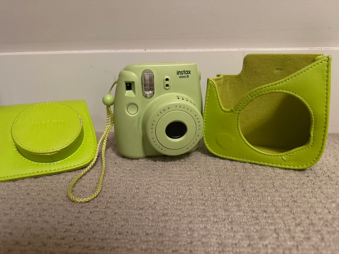 Instax Mini 8 instant camera, pastel green colour. Includes matching carrying case. Great condition. Ready to capture memories.