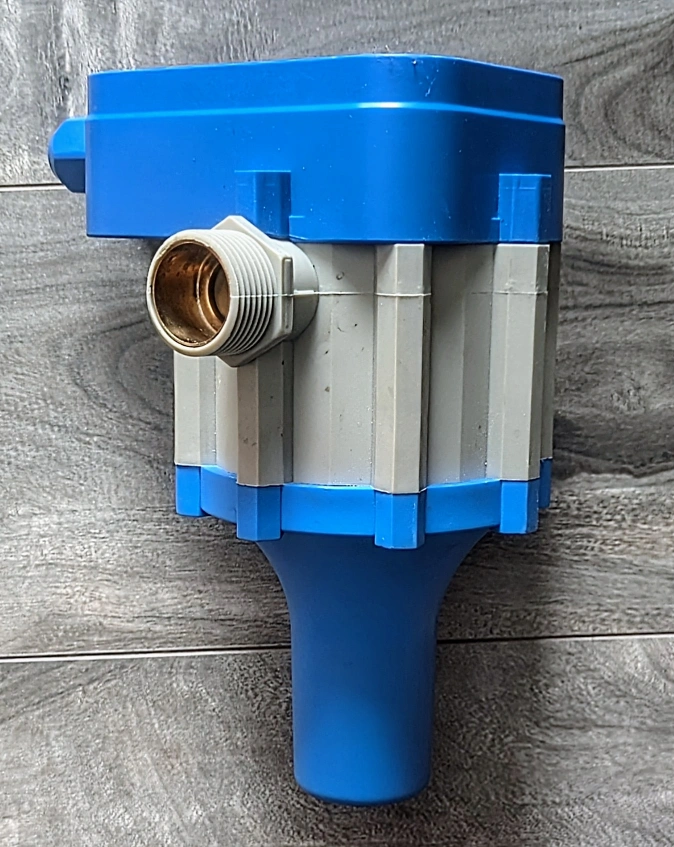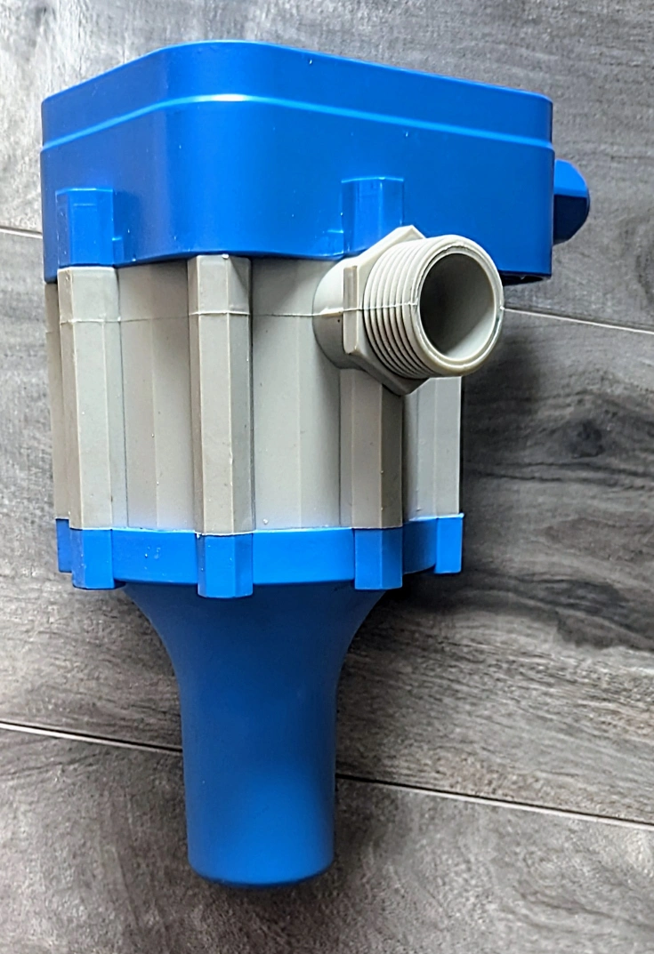 Electronic switch control water pump pressure controller. 110-120V, 50-60Hz. Max 10 bar, 1.1kW, 10A. Blue and grey plastic housing. Includes power, pump on, failure, and restart indicators.
