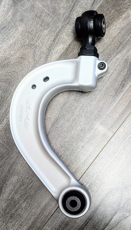 Silver powder-coated rear lower control arm. Includes spherical bearing. For specific vehicle applications. Check fitment.