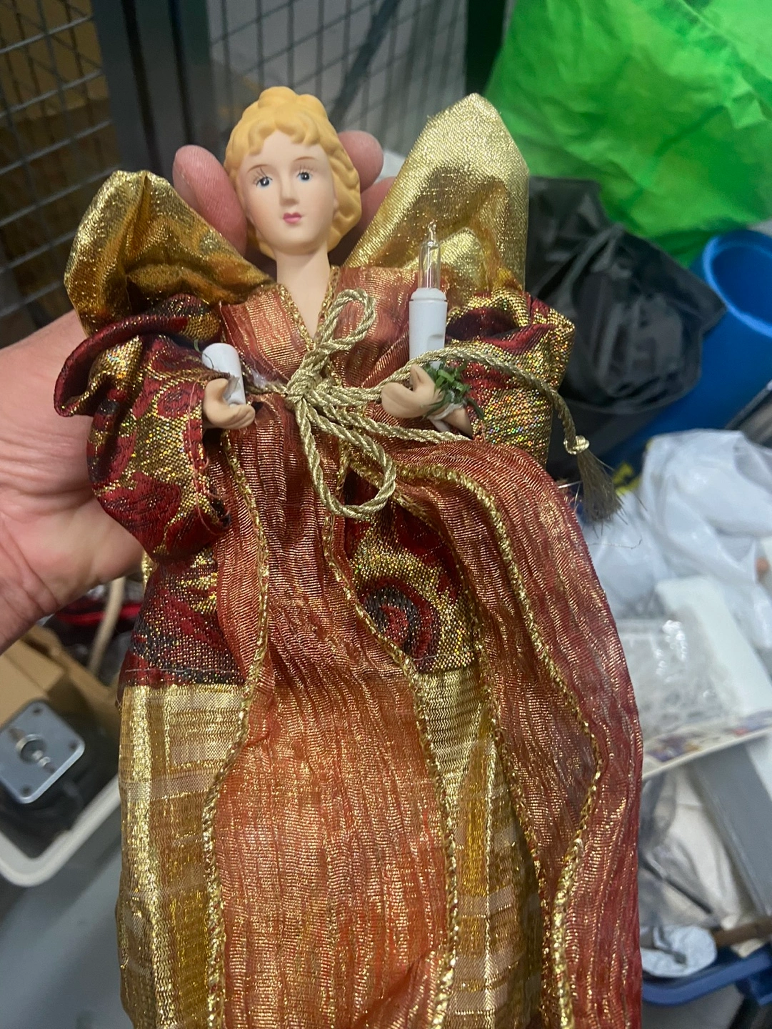 Bundle includes: 25 outdoor light clips by Lites Up, small artificial Christmas tree, assorted gold Christmas ornaments, and a antique lighted angel tree topper. Perfect for holiday decorating!