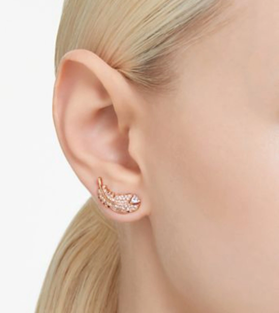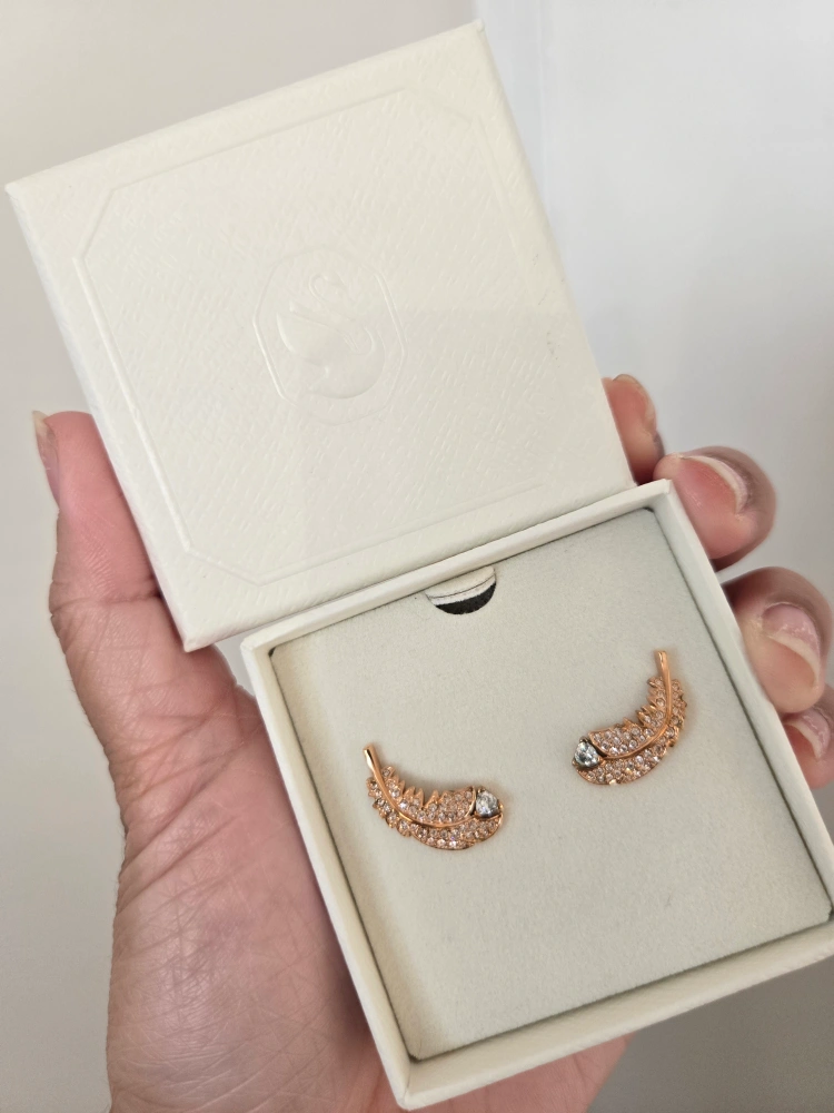Rose gold-tone plated feather earrings. Clear crystal pavé. Comes in original box. Beautiful and delicate. new without tags(unused) in excellent condition.