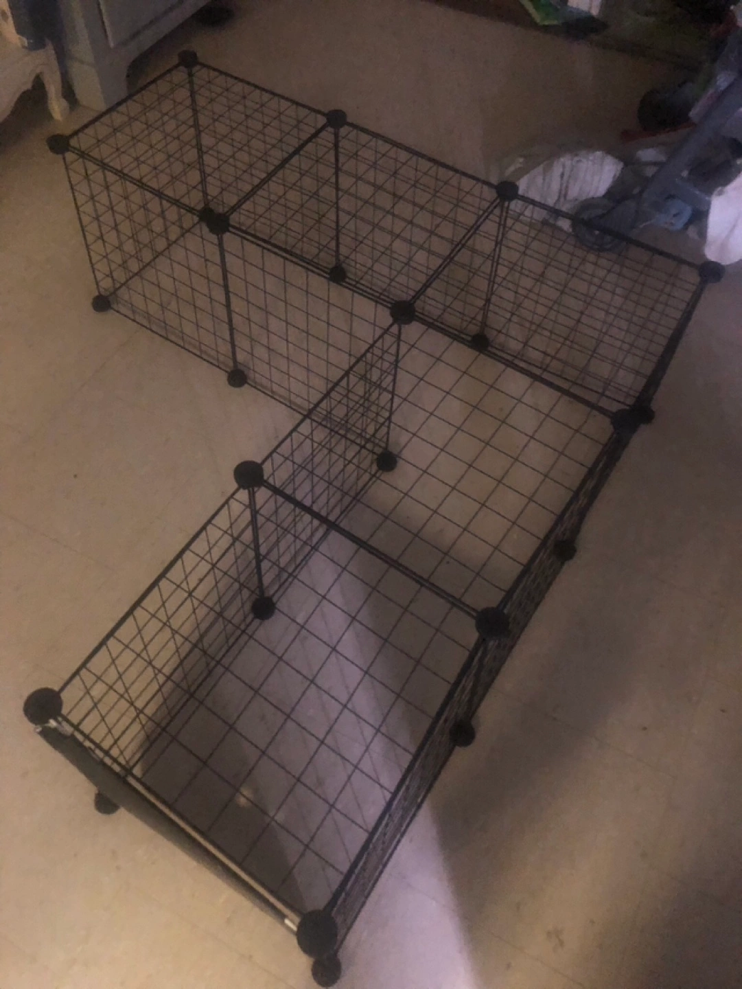 Black wire cube organizer. Sixteen panels. Connects to create various configurations. Great for storage or pet enclosure.