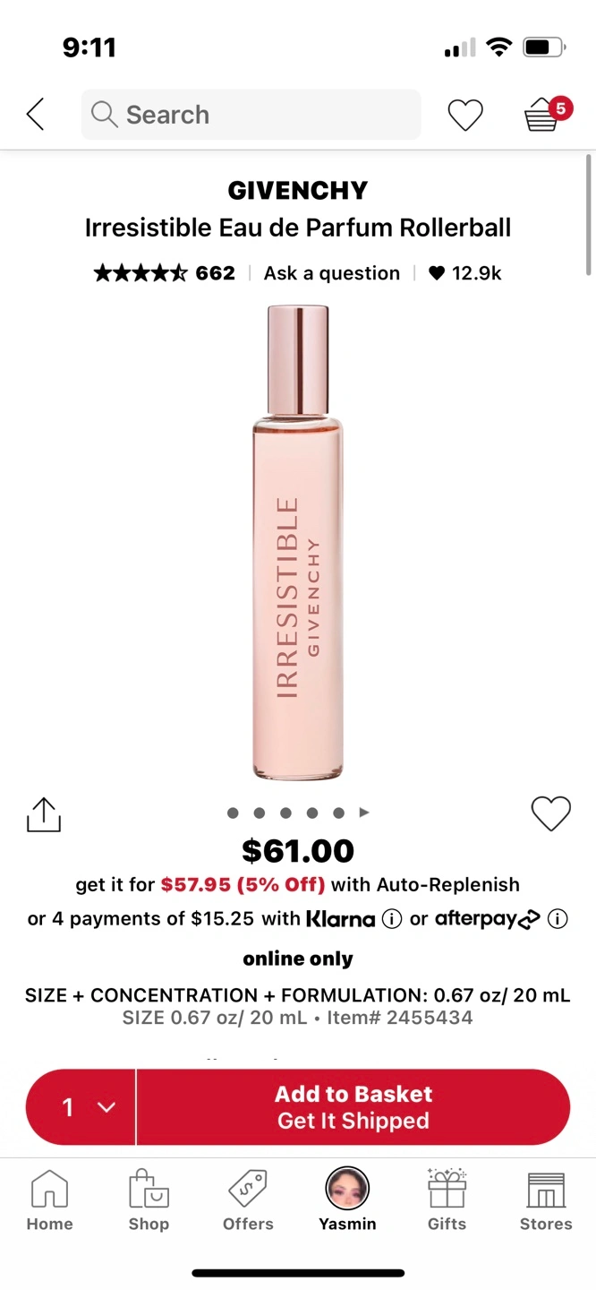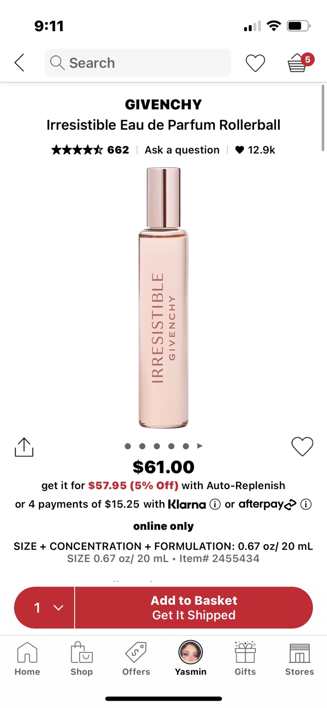 Givenchy Irresistible Eau de Parfum Rollerball. 0.67 oz/ 20 mL. Rollerball perfume.