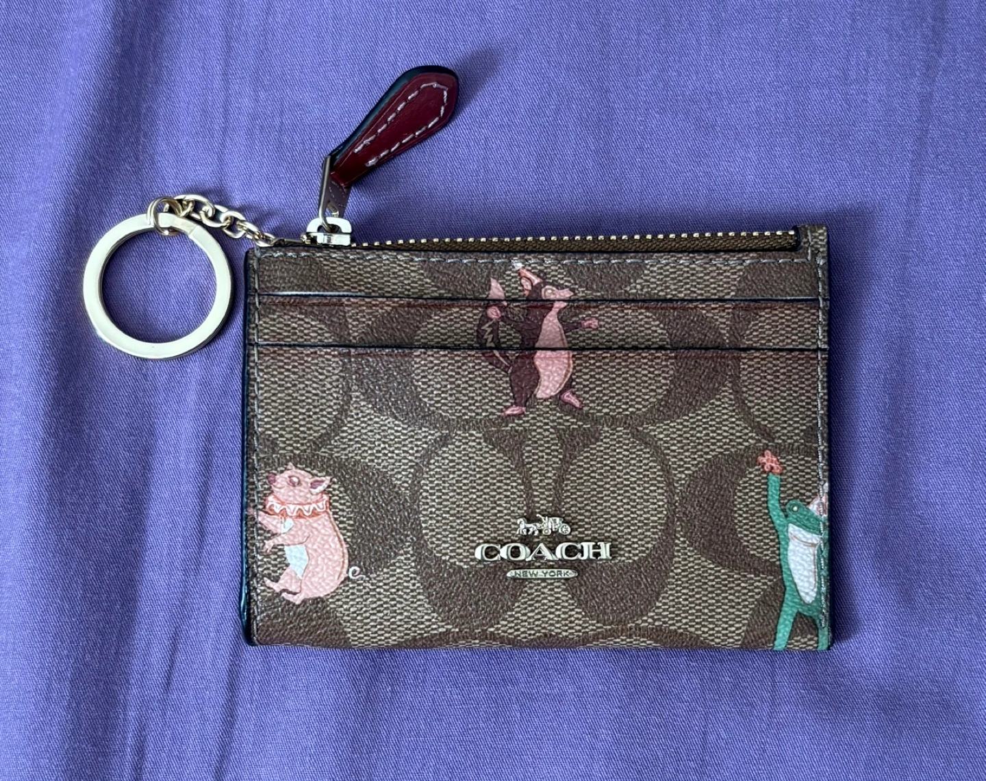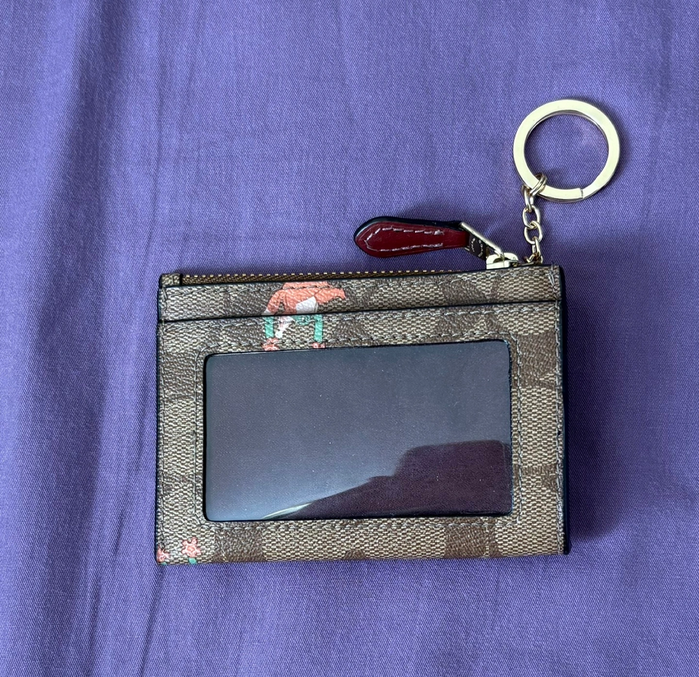 677Adorable Coach mini wallet. Features a zip closure, key ring, and card slots. Compact design, perfect for everyday use. Unique animal print. Slightly used. In excellent condition.