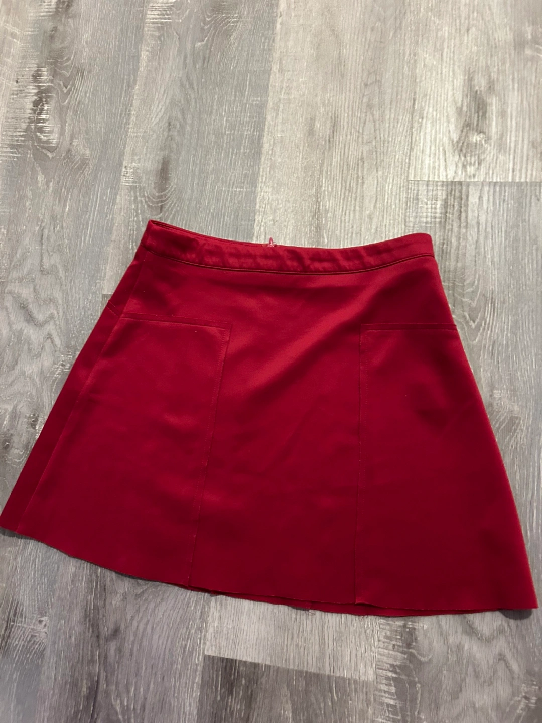 Dark red mini skirt. A-line shape. Two pockets. Size 38. Great for any occasion.