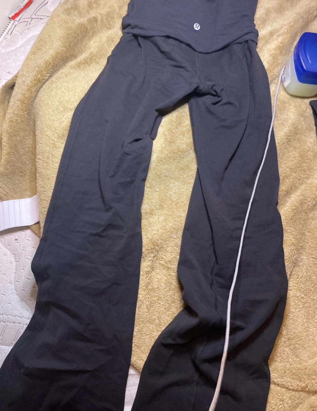 Lululemon black flared pants. Size 4. Excellent condition. Soft, stretchy material. Perfect for yoga or casual wear. I've worn it once it doesn't really fit so i'm selling.