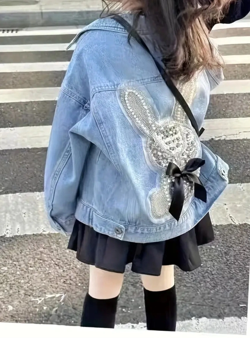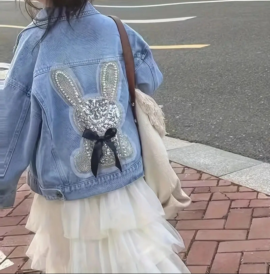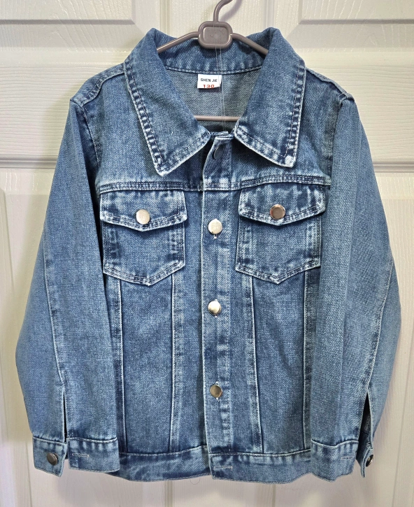 152It's a new product. A shiny cubic denim jacket. Size: 7-8 years old ☆ You can come and look at the clothes and buy them. ☆ You can try it on and decide to buy it