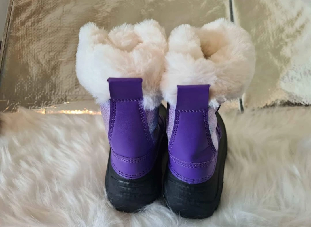 299Adorable purple snow boots. Features faux fur trim and a waterproof bottom. Great for keeping little feet warm and dry in the snow.