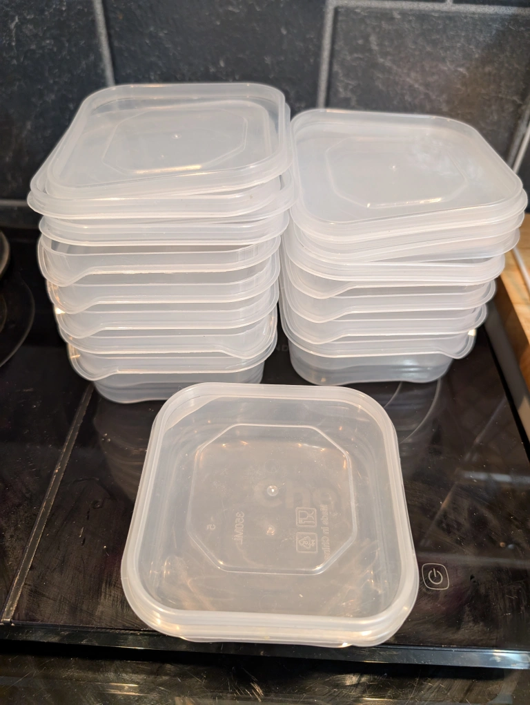 Stackable square containers, great for leftovers or meal prep. Perfect for organizing your fridge.