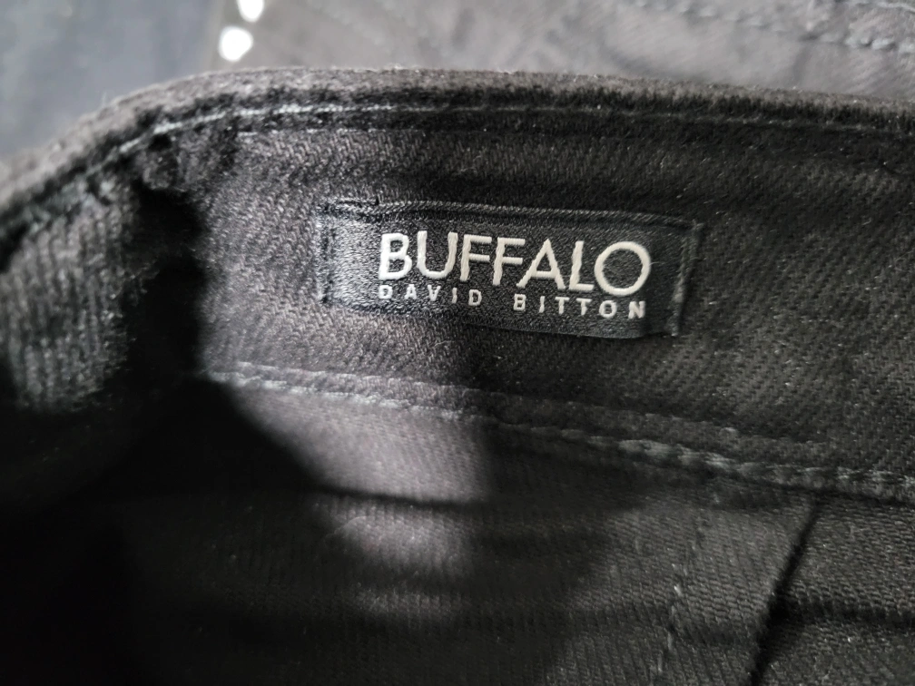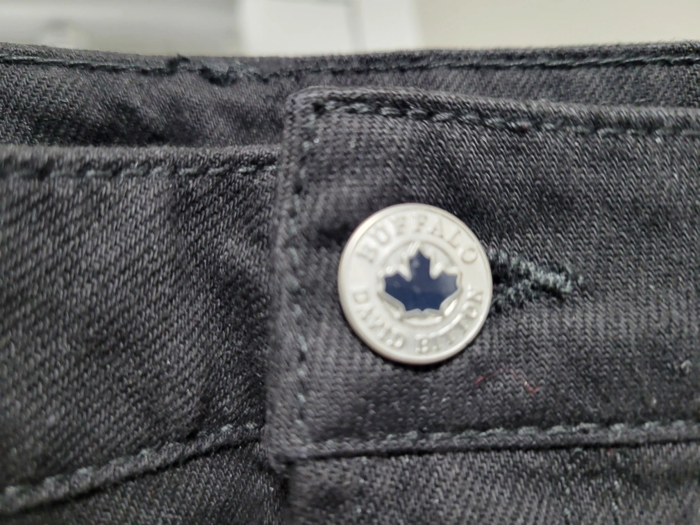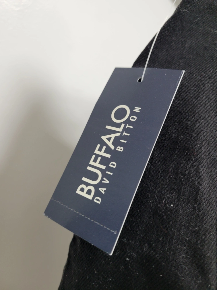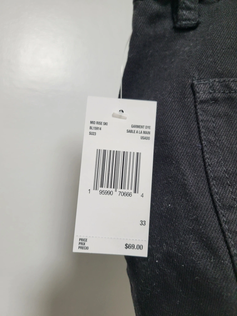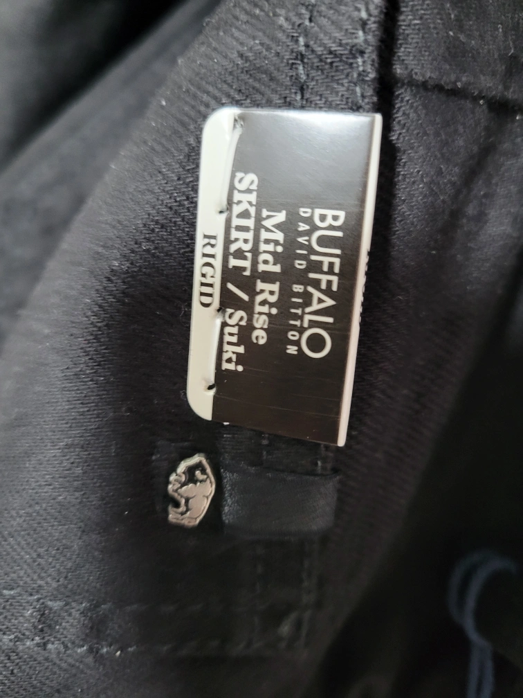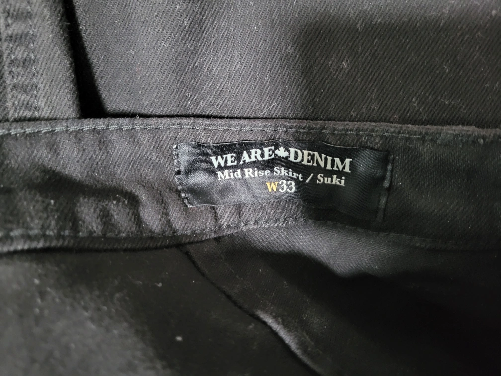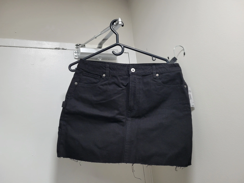 Black denim mini skirt. Mid rise. Size w 33. Rigid. New with tags.