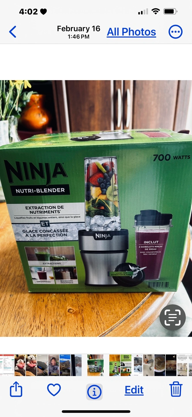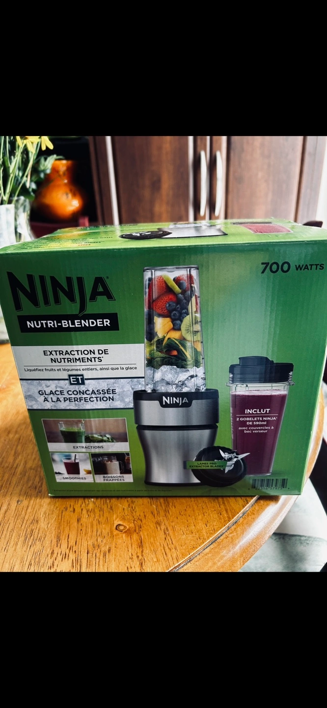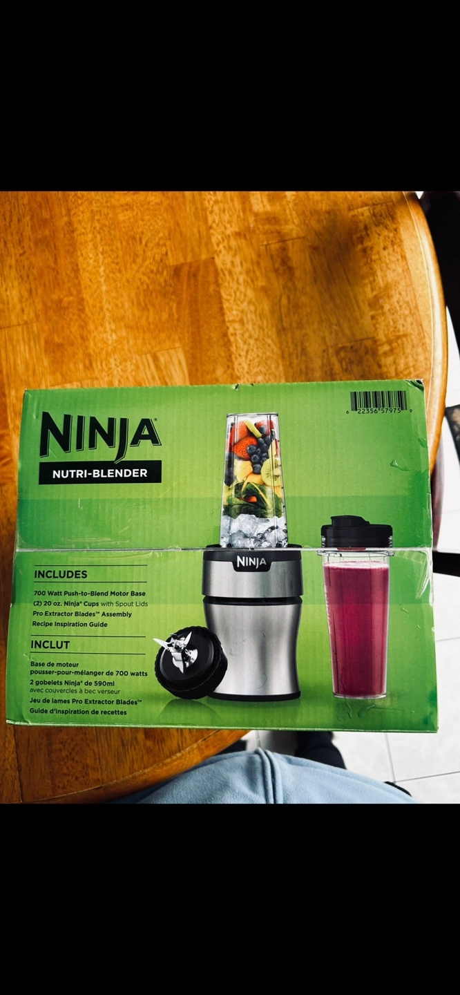 74New in box. 700-watt motor base. Includes two Ninja cups with lids. Pro Extractor Blades assembly. Recipe inspiration guide.