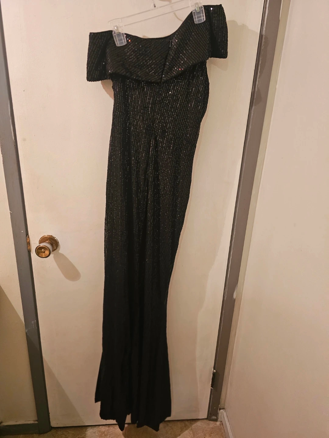 FAERIESTY Black Sequin Off-the-Shoulder Gown - Size S