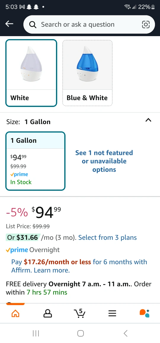 Crane Ultrasonic Cool Mist Humidifier - 1 Gallon