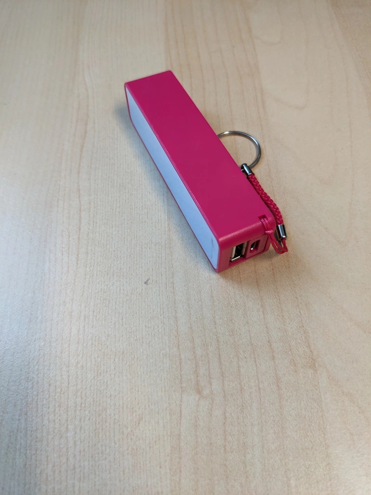 1000+Compact power bank. Features two USB ports. Includes a convenient keychain. Great for travel.
