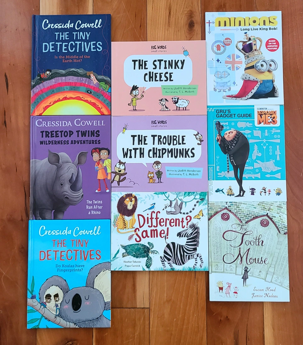 Includes Cressida Cowell's Tiny Detectives and Treetop Twins, Minions, and other titles. Great for young readers.
