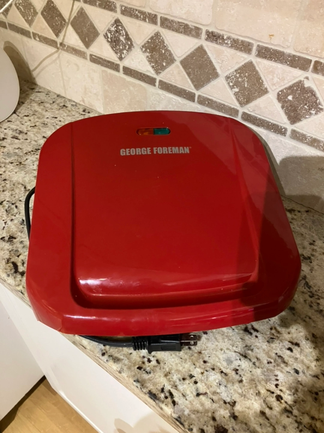 Compact and portable, size is approximately 12x12 inches. Water bottle as scale reference. Nonstick surface with a plastic drip tray for easy cleaning. Used once, in good condition. Same model is $100 on Amazon. Pickup only at 212 Eglinton Ave E.