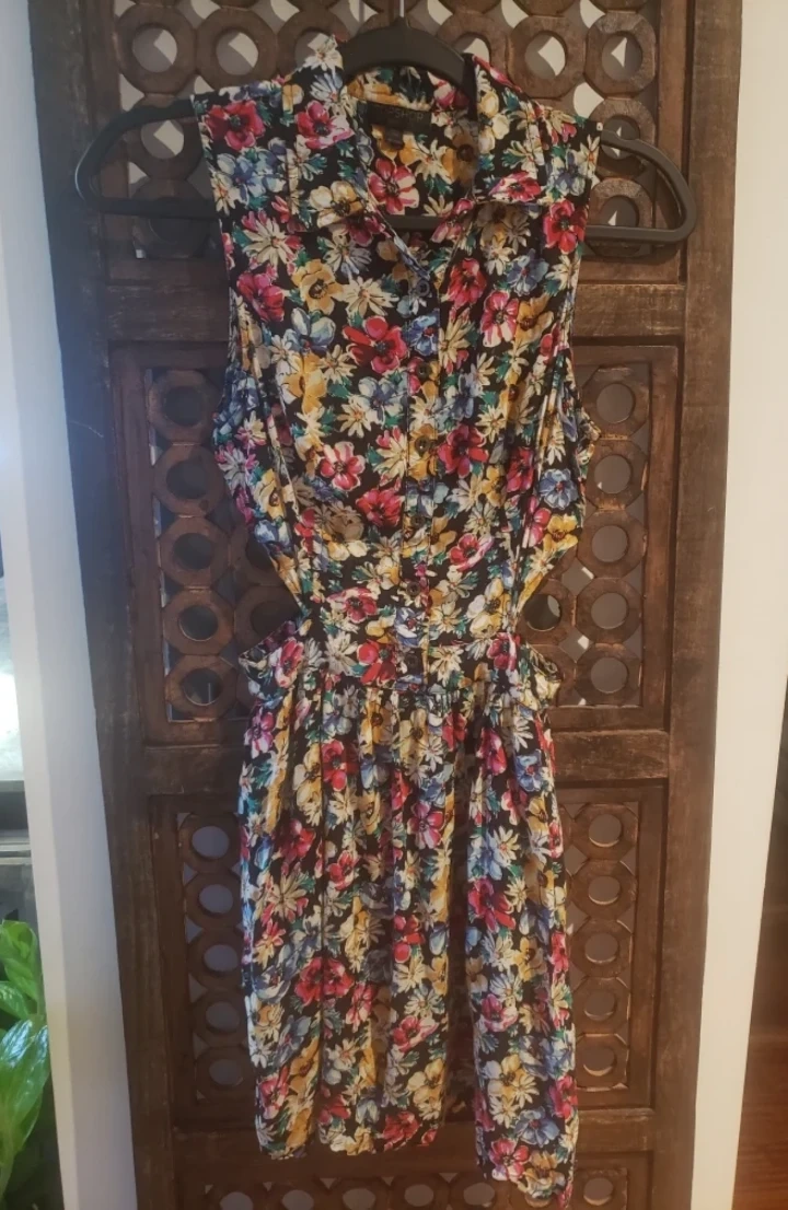 Adorable floral print sleeveless romper. Features a collared neckline, button placket and side cutouts. It's a comfortable lightweight fabric. Not to mention, so cute!
