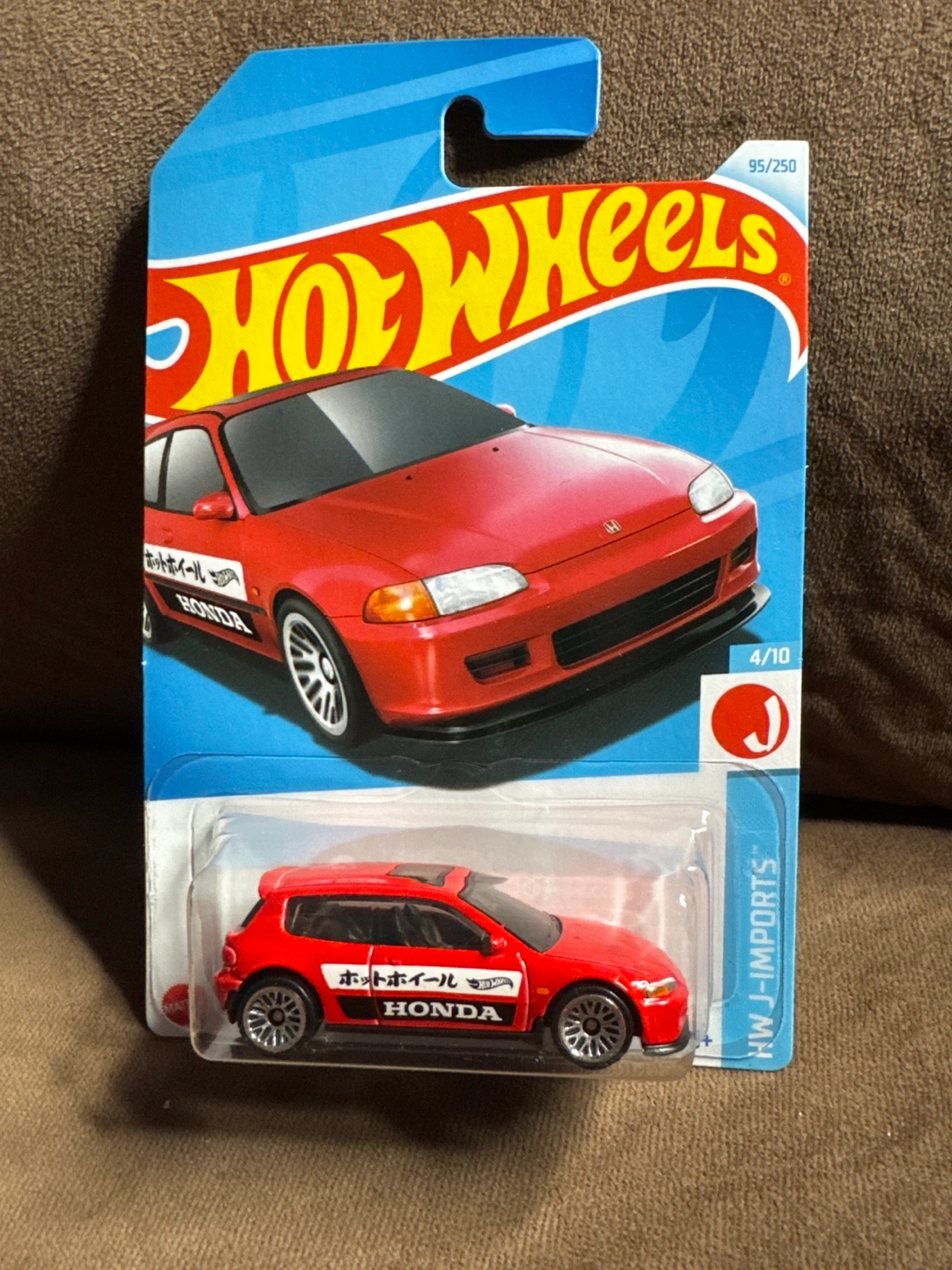 Collectible Hot Wheels car. Red Honda Civic. Part of the HW J-Imports series. Number 95/250. In package.
