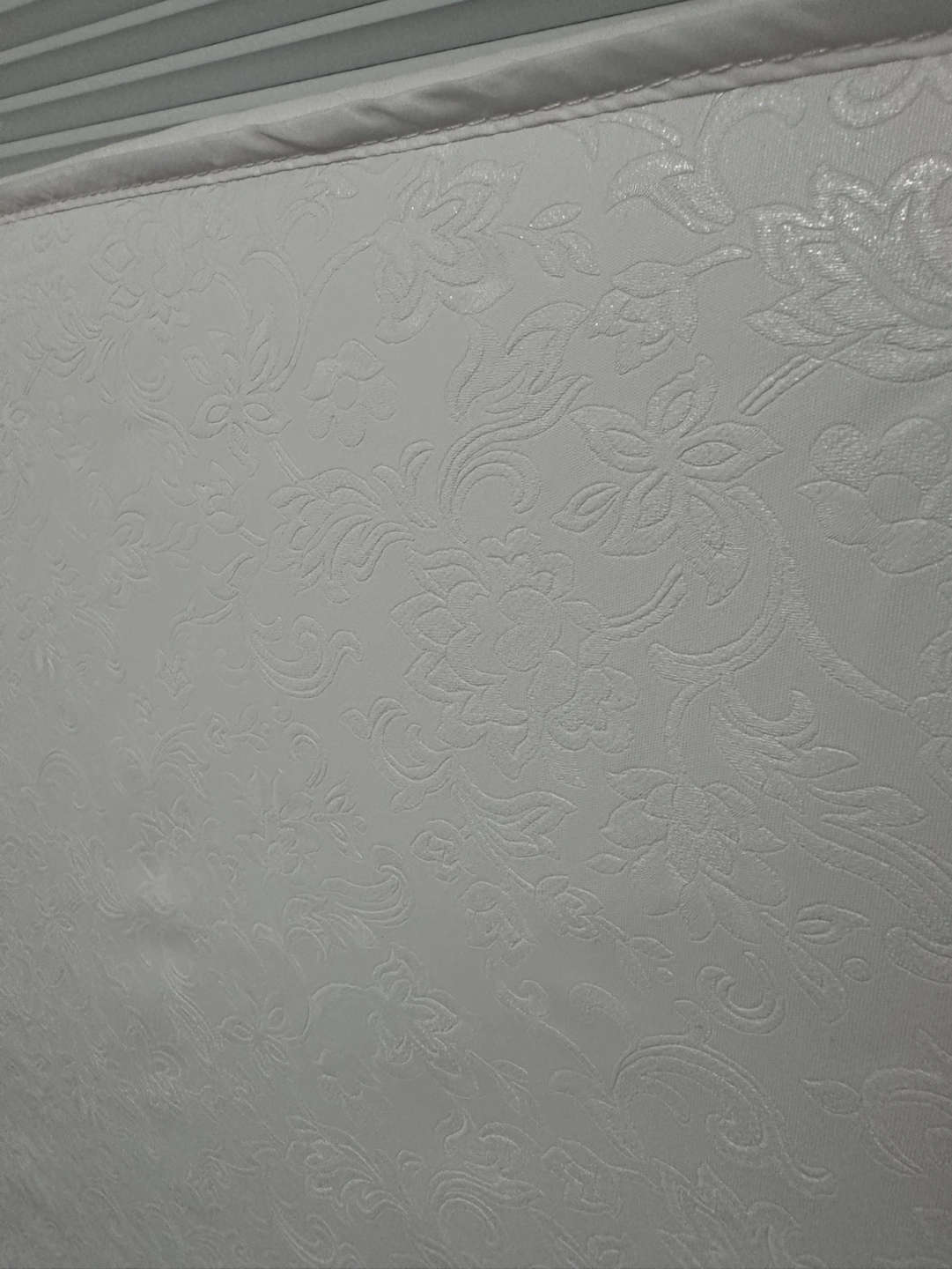 White with embossed floral pattern. Impermeable
