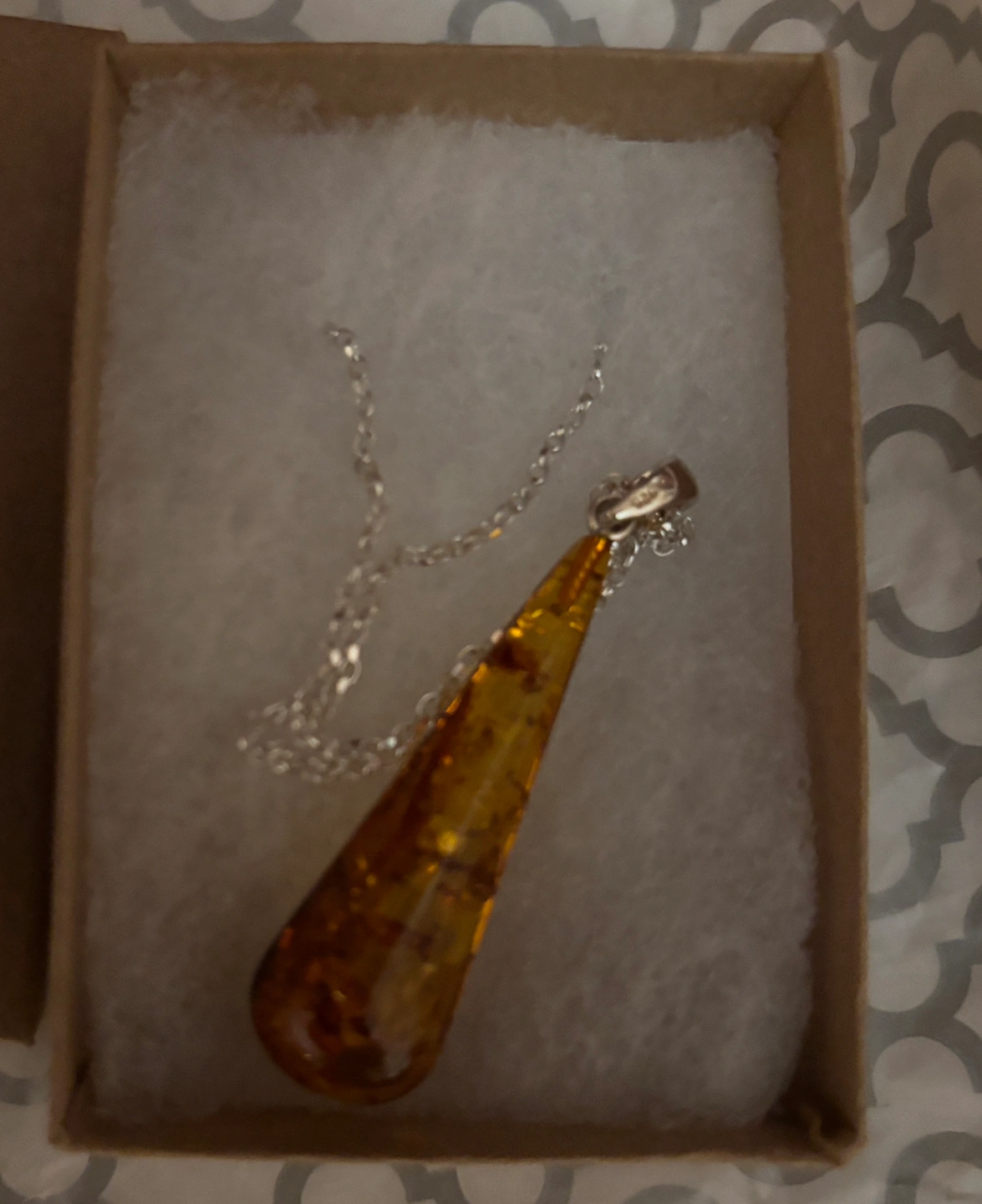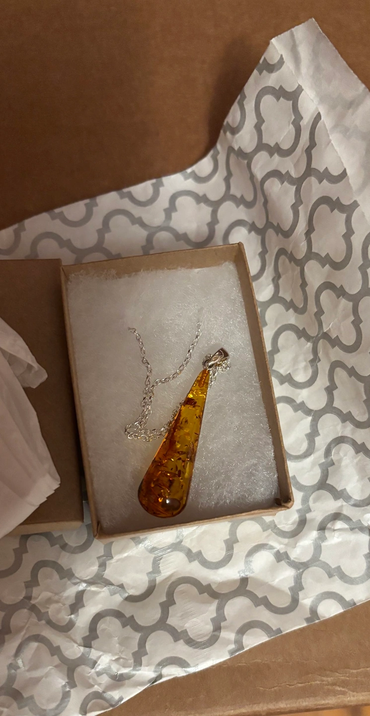 Brand new Amber pendant necklace in the box.
