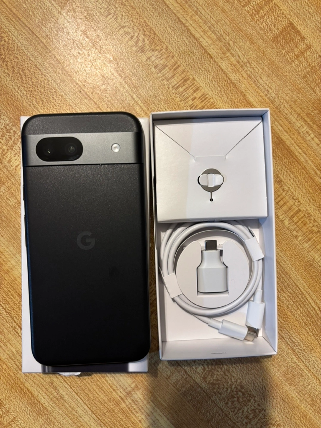 10New Google Pixel 8a smartphone. Black. Comes in original box with charger and cable. Unopened.