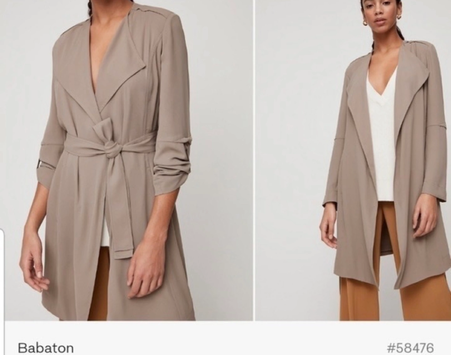 Lightweight taupe jacket. Open front, long sleeves, and self-tie belt. Size small. Modern fit. Brand new with tags