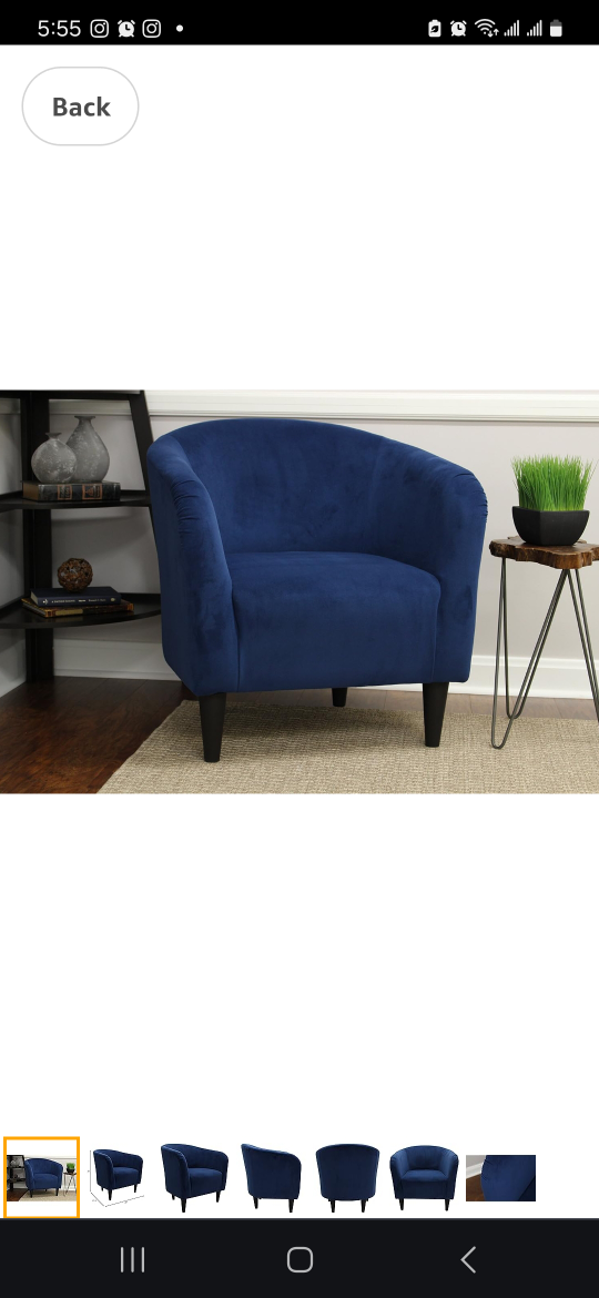 Buy & SellNavy Blue Velvet Accent ChairNavy Blue Velvet Accent Chair$110Comfortable accent chair. Dark navy blue velvet upholstery. Simple, modern design. Wooden legs.ConditionLike newWHERE TO MEETCheck LocationView MapSELLERAliBriar Hill696 reviews2 chats·0 favorites·26 viewsSEND CHAT TO SELLERHi Ali! I’m interested in your listing.Hi Ali! I’m interested in your listing.Get the Karrot app to chatSign In to chat