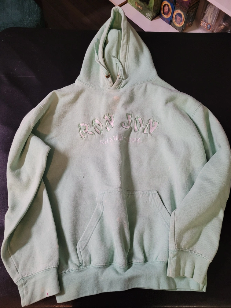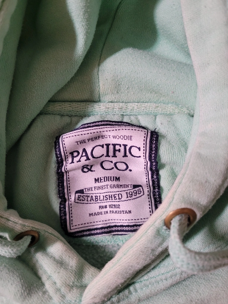 138Men's medium Pacific & Co. hoodie. Features Ron Jon embroidery. Light mint green colour. Good used condition.