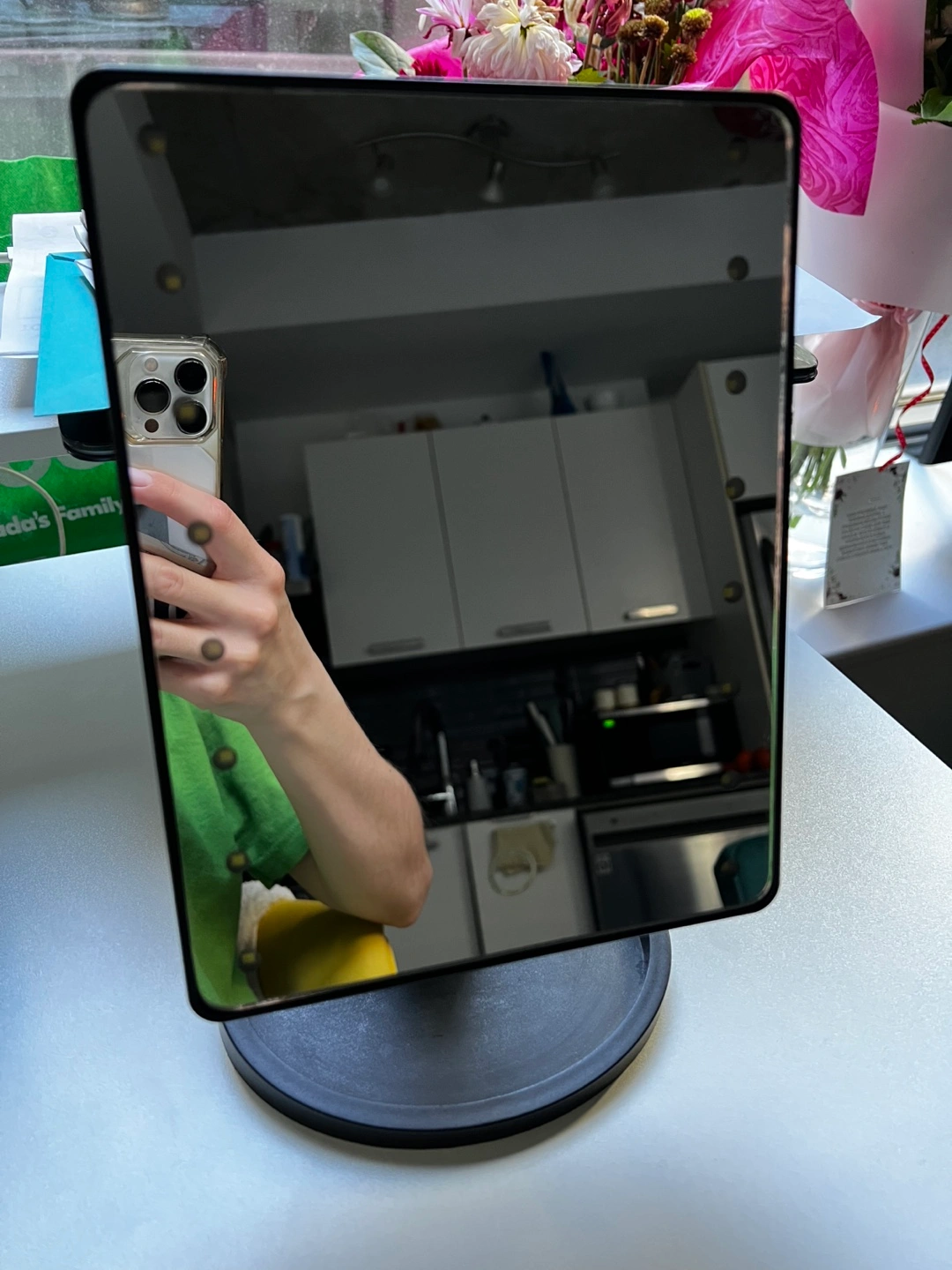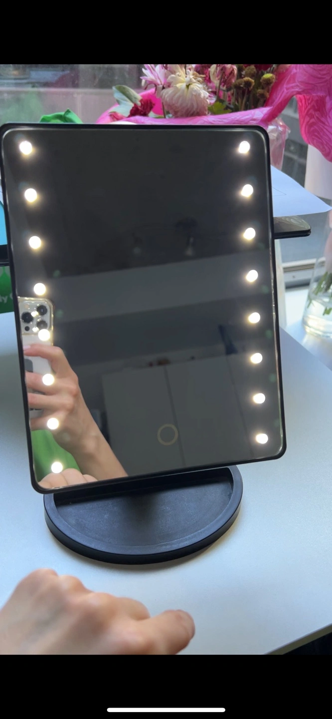 226Black LED vanity mirror. Adjustable stand. Perfect for makeup application. Lights up
