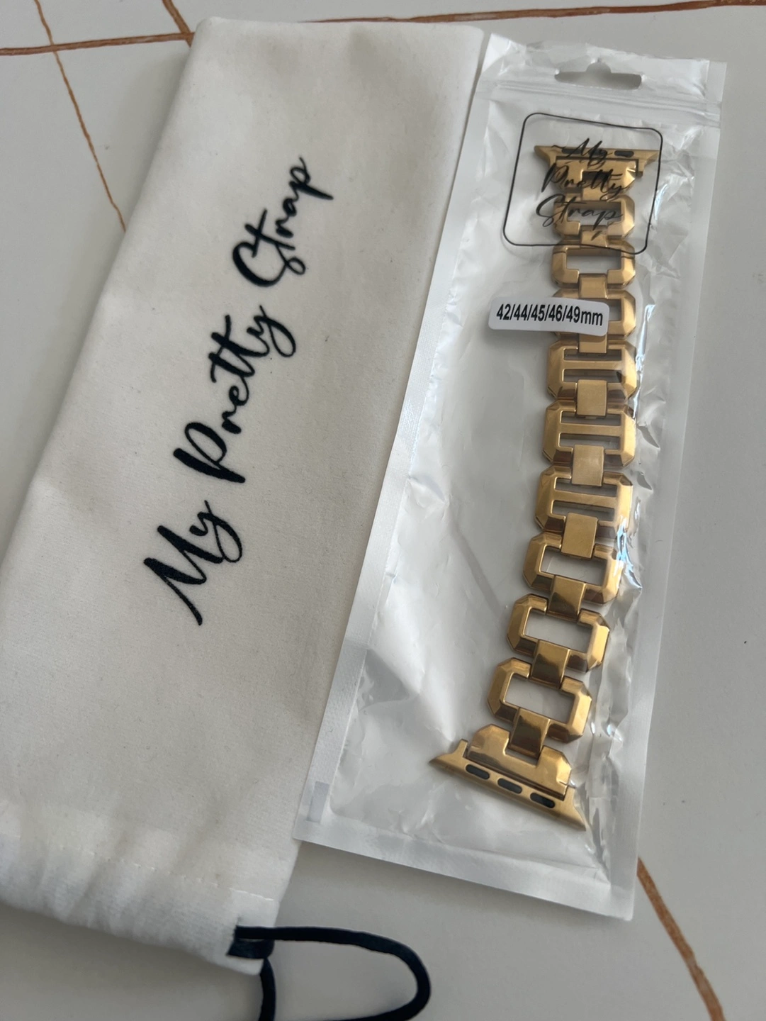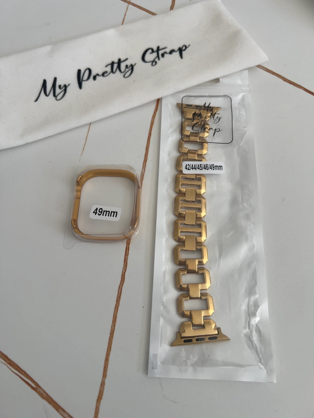 Brand new gold compatible for Apple Watch band and case. Fits 49mm Apple Watch. Includes a protective case and storage pouch. Stylish and durable.