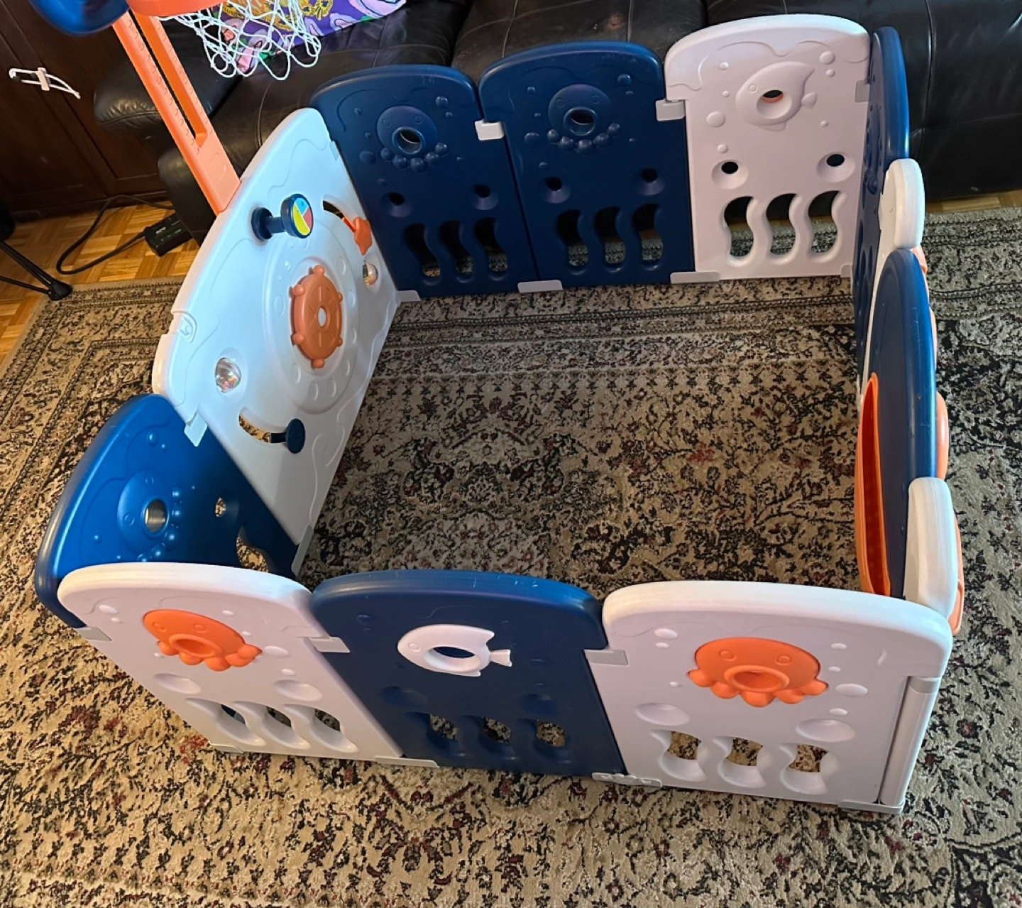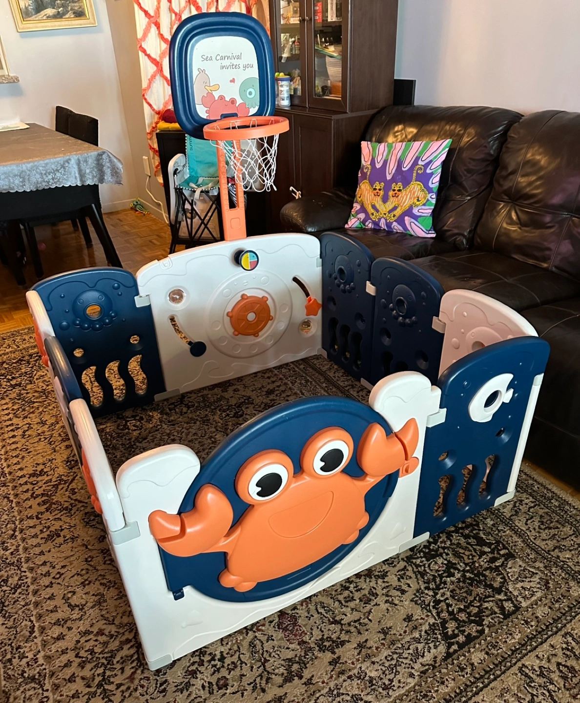 556Great play yard for babies/young toddlers. Basketball net height is adjustable. Great size for condos too! In used condition, price reflects this. Length and width 45inches Height 24.5inches Pu asap downtown Toronto Lake shore and Bathurst