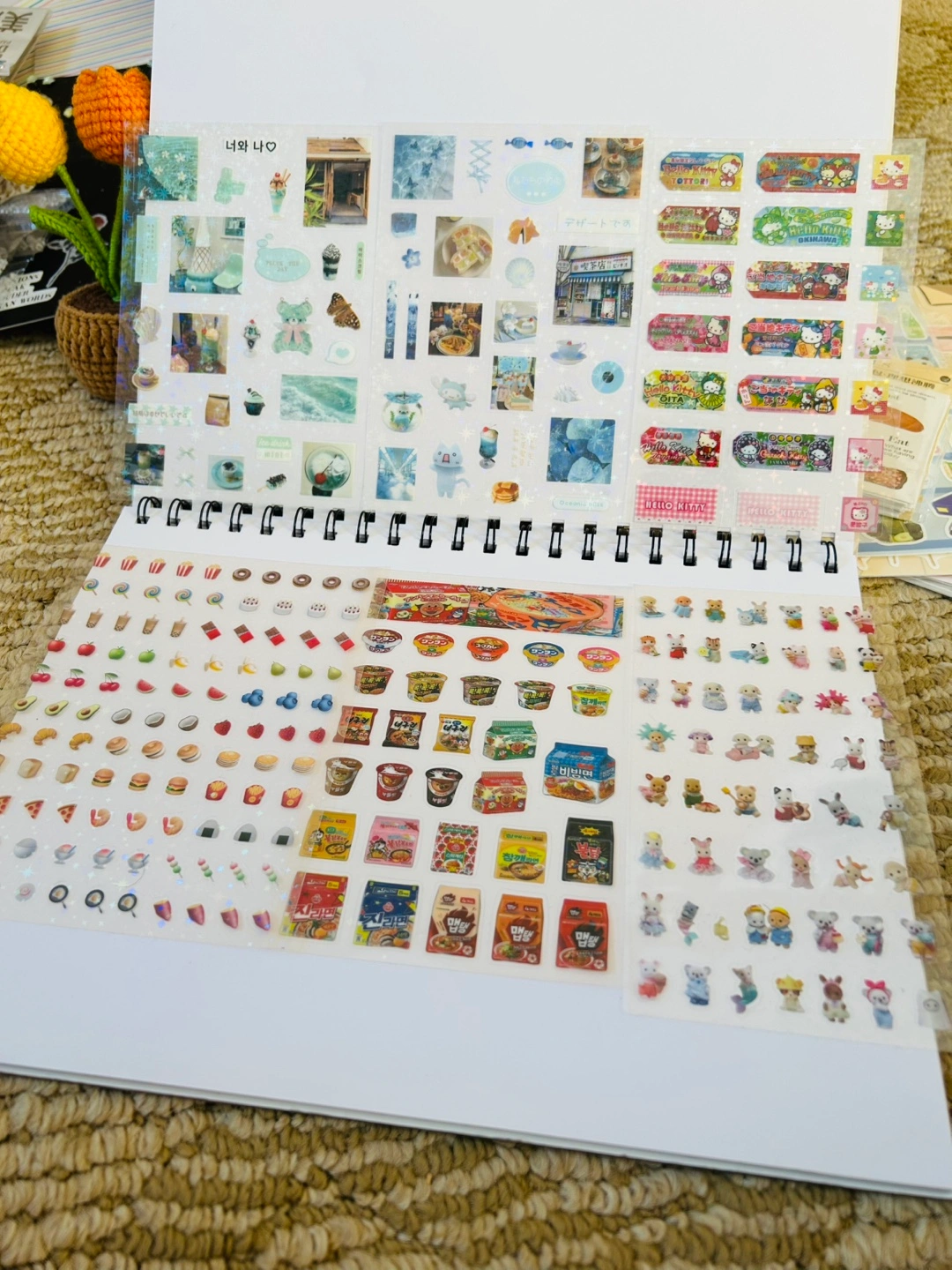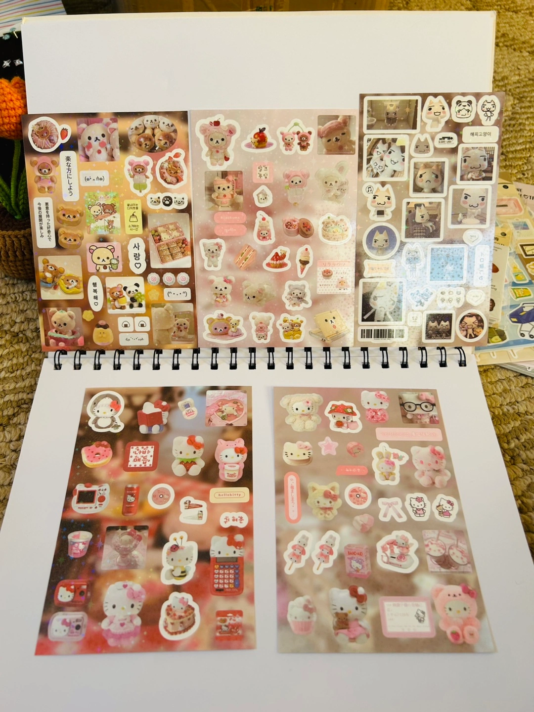 Huge lot of decorative stickers. Features various themes including Sanrio characters like Hello Kitty, Rilakkuma, and other cute designs. Perfect for journaling, scrapbooking, or decorating.