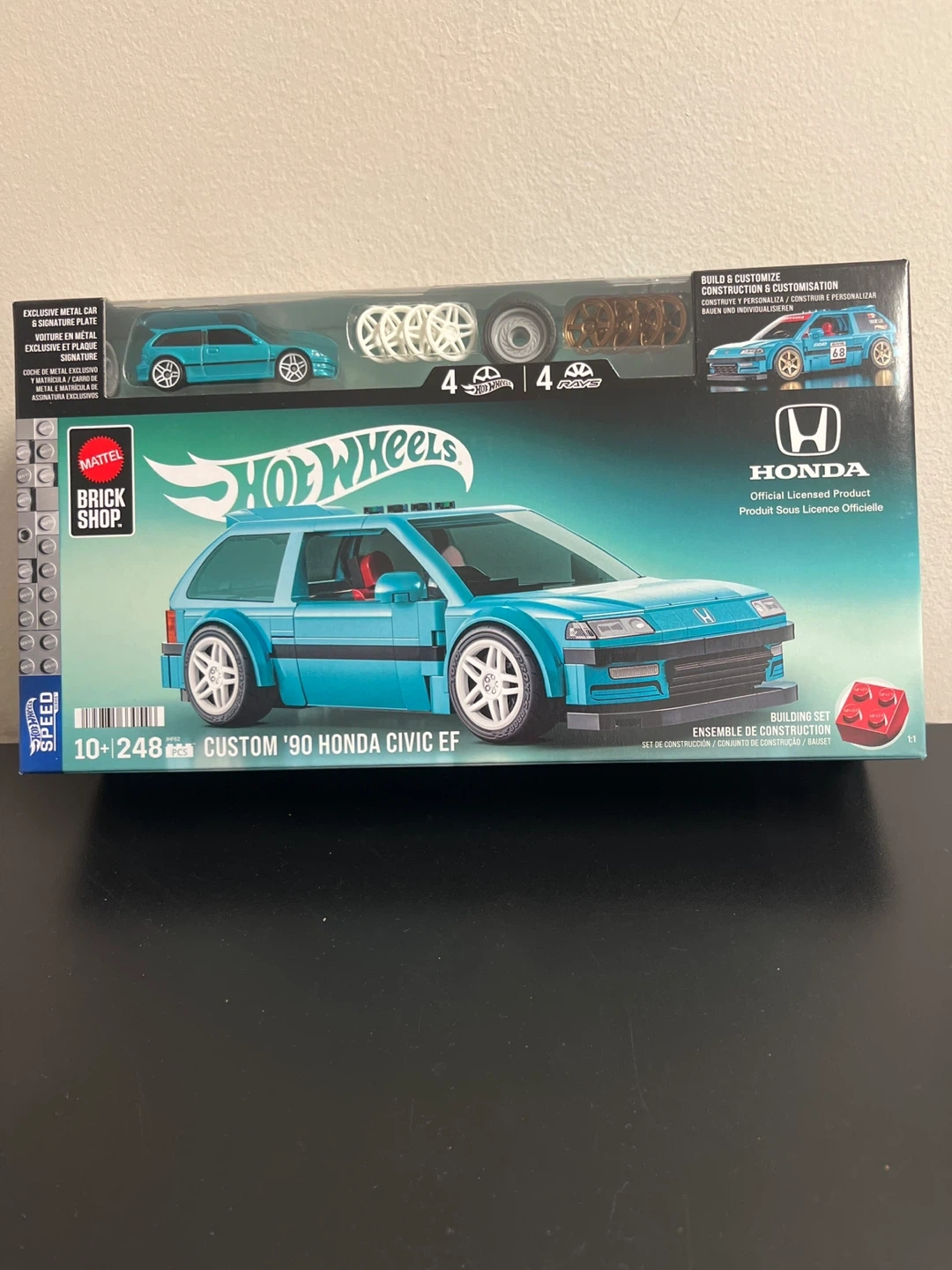 This Hot Wheels Brick Shop building set lets you construct a custom '90 Honda Civic EF. It includes 248 pieces and is recommended for ages 10 and up. Get ready to build and customize your own iconic car!